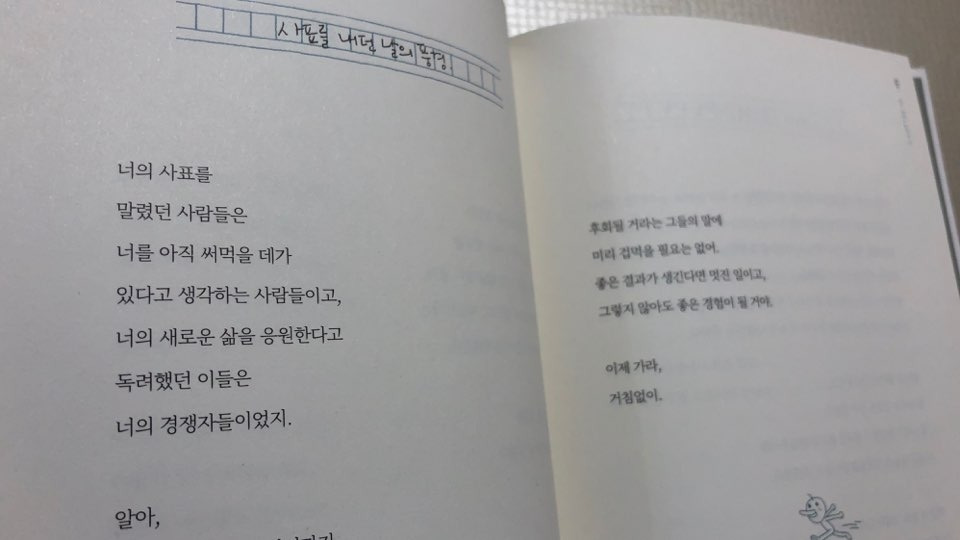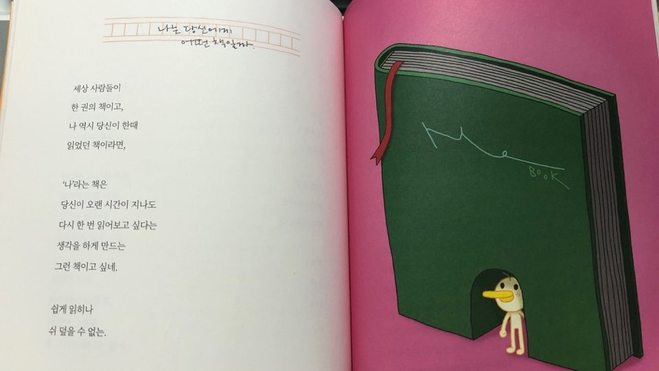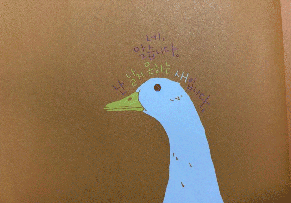 이 책은 그동안 작가에게 익숙했던 신뽀리를 발견할 수 없다. 대신 오리가 그것도 미운 오리가 등장한다. 석촌호수에 힘들게 떠서 희망을 전하던 러버 덕이 겹쳐졌다. 러버 덕이 미운 오리 새끼였다는 걸 오늘에서야 알았다.