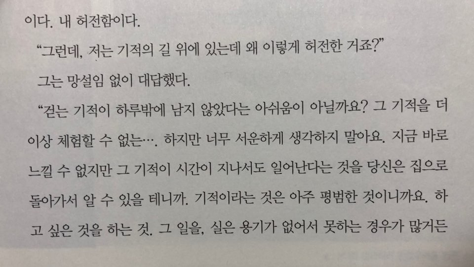 하지만 저자와는 다르게 내게는 그만한 용기는 애초에 탑재되지 않았던 듯하다. 제기랄스럽게도. 비단 순례가 아니더라도 갈망하는 일이 있다 해도 이후의 일들이 염려스러워 줄곧 다른 이유를 찾아 그 자리에 머물고 있다. 그래서 사표는 여전히 가슴에만 있다.