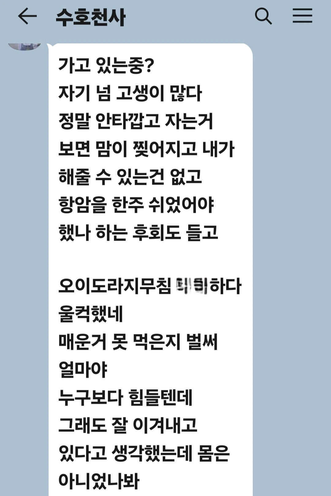 만자씨가 눈물이 많은 편이지만 이 톡을 보고 어찌 울지 않을 수 있을까?