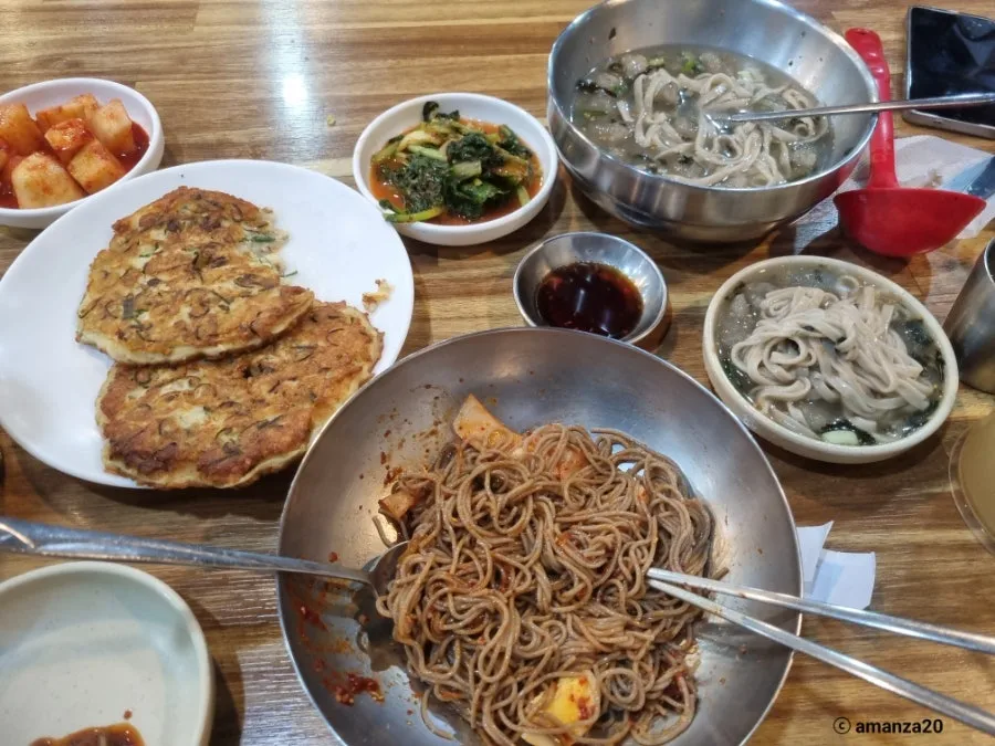 모든 음식이 맛있었지만 우린 '샘밭파'였다. 막국수와 칼국수에 참기름(들기름?) 냄새가 많이 났는데 우리 스타일은 아니었다.