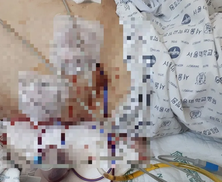 특히 배액관(몸속 핏물이나 염증 등을 빼내는 관)에서 핏물 등이 계속 나와 배액관 위치를 복부 이리저리 옮기며 몸속에 남은 핏물과 수술 잔여물 등을 빼내는 일을 거의 매일 했는데 마취도 없이 배액관을 움직이는 건 또 다른 고통이었다.