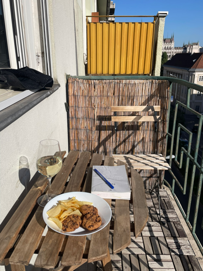 나는 어김없이 테라스에 초코칩쿠키와 와인한잔 그리고 책과 연필을 들고 국회의사당을 바라보며 의자에 앉았다.