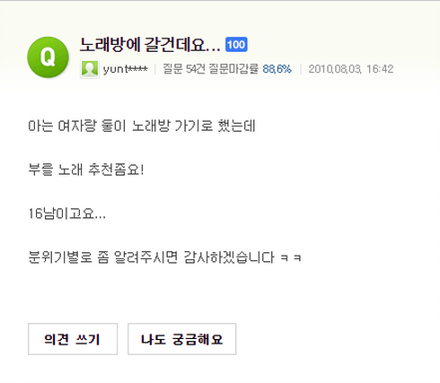 필자가 코인 노래방을 찾아갔던 어느 날, 실제로 옆 칸에서 이 노래를 부르는 것을 들어본 적이 있다. 분명 그 사람은 자신의 선곡을 뿌듯해하며 마이크를 잡았을 것이다. 제발 그러지 마요. 부탁입니다. 어설프게 따라 불렀다가 피 봤잖아요.