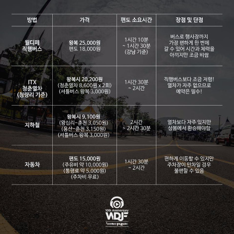 공간이 쾌적하며 밤새 놀 수 있는 것은 좋지만 문제는 춘천이 수도권에서 멀고 교통편도 좋지 않다는 것이다. 그리고 춘천으로 향하는 교통편은 그렇게 좋지도 않다. 왕복으로 최소 2시간 20분(직행버스)이 걸리며 다른 교통편은 더 힘들다. 이처럼 수도권 관객들도 힘든데 지방 관객들은 더더욱 힘들다. 문제는 행사장에 도착하는 것에서 끝나지 않는다. 일일권이 아닌 이틀권을 예매한 사람들 중 자가용이 없는 사람들에게는 숙소로 오고 가는 문제가 남아있기 때문이다. 행사장으로 가는 버스는 매우 한정되어 있고 그 버스가 숙소를 거친다는 보장도 없다. 결국 택시를 이용해야 하는데 이틀을 택시로 이동하는 것을 고려하면 택시비도 만만치 않다. 이 점은 그간 월디페(사운스 퍼레이드의 모 페스티벌)에 꾸준히 제기된 문제이다. 다행히 올해 서울로 옮기며 이러한 문제는 해결될 것으로 보인다.