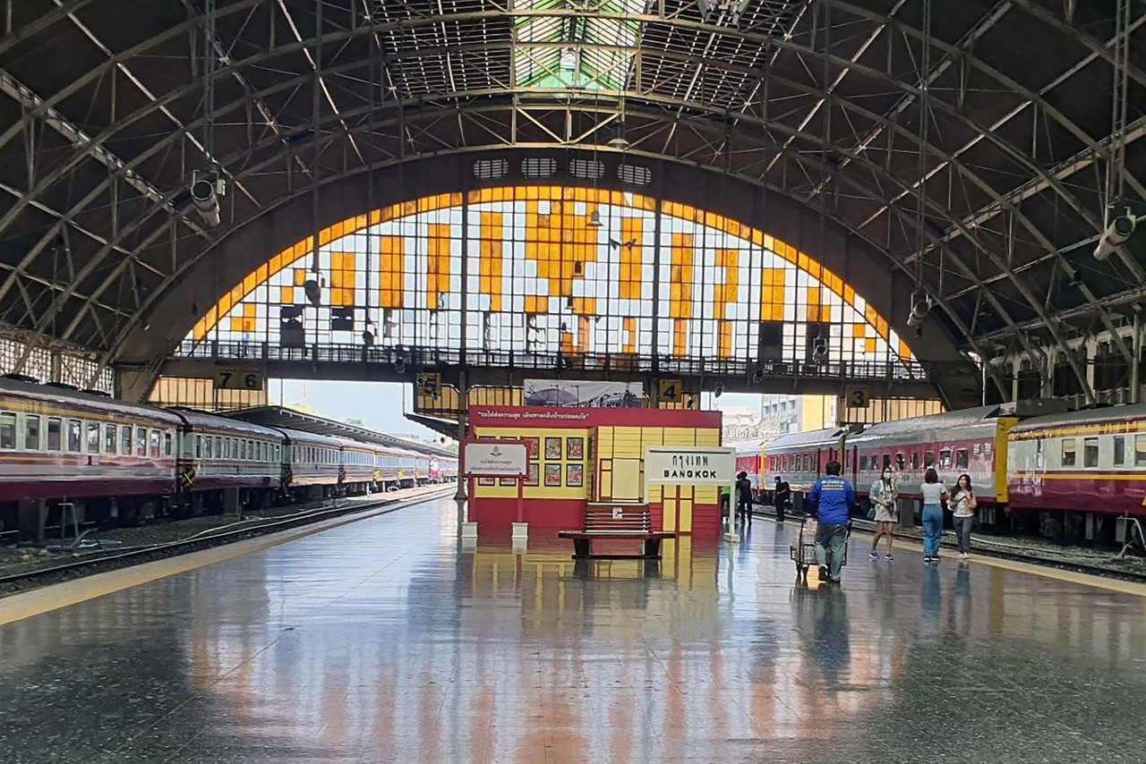 방콕사무소 창 너머 후아롬퐁역 은 밤엔 쪽빛 조명을 받는 우아한 신 르네상스풍의 건축물이다. 1916년 완공한 역사로, 반 원통형 지붕을 많은 원형 기둥이 받치고 있는 형상이다. 대합실에 뿌려지는 햇살은 스테인드글라스 창문을 걸어 들어와 철도 여행의 설렘을 말하고 있다.