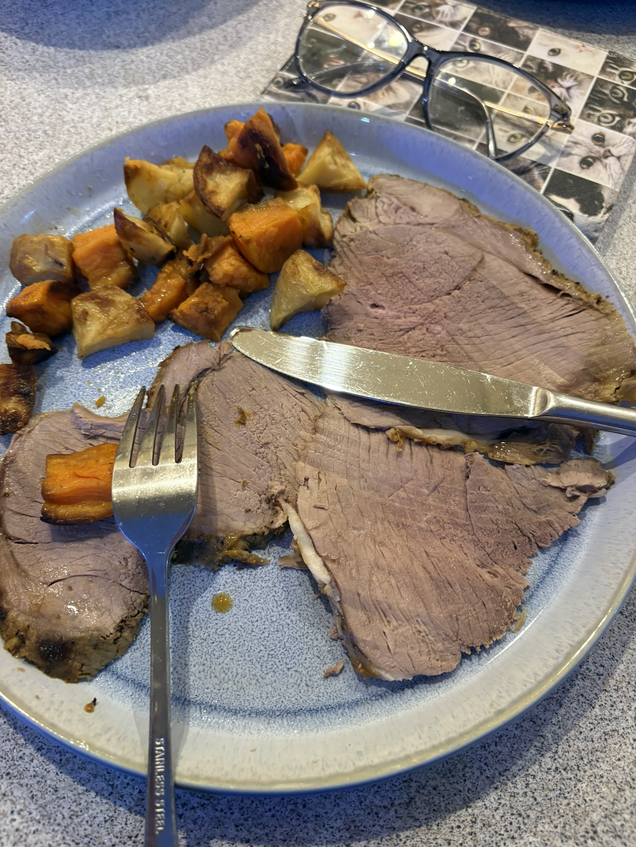 저녁에는 할머니가 양고기 요리를 해주셨다. 호주 음식이라는데 맛있었다. 양고기라곤 꼬치 형태로 밖에 안 먹어봤는데 저렇게 먹으니 진짜 양요리를 먹은 기분이었다. 시즈닝이 되게 맛있었다. 소스도 따로 만들어주셨는데 아마 양고기 구우면서 나온 기름으로 만드신 것 같다. 근데 그건 내 취향이 아니라서 그냥 고기만 먹었다.
