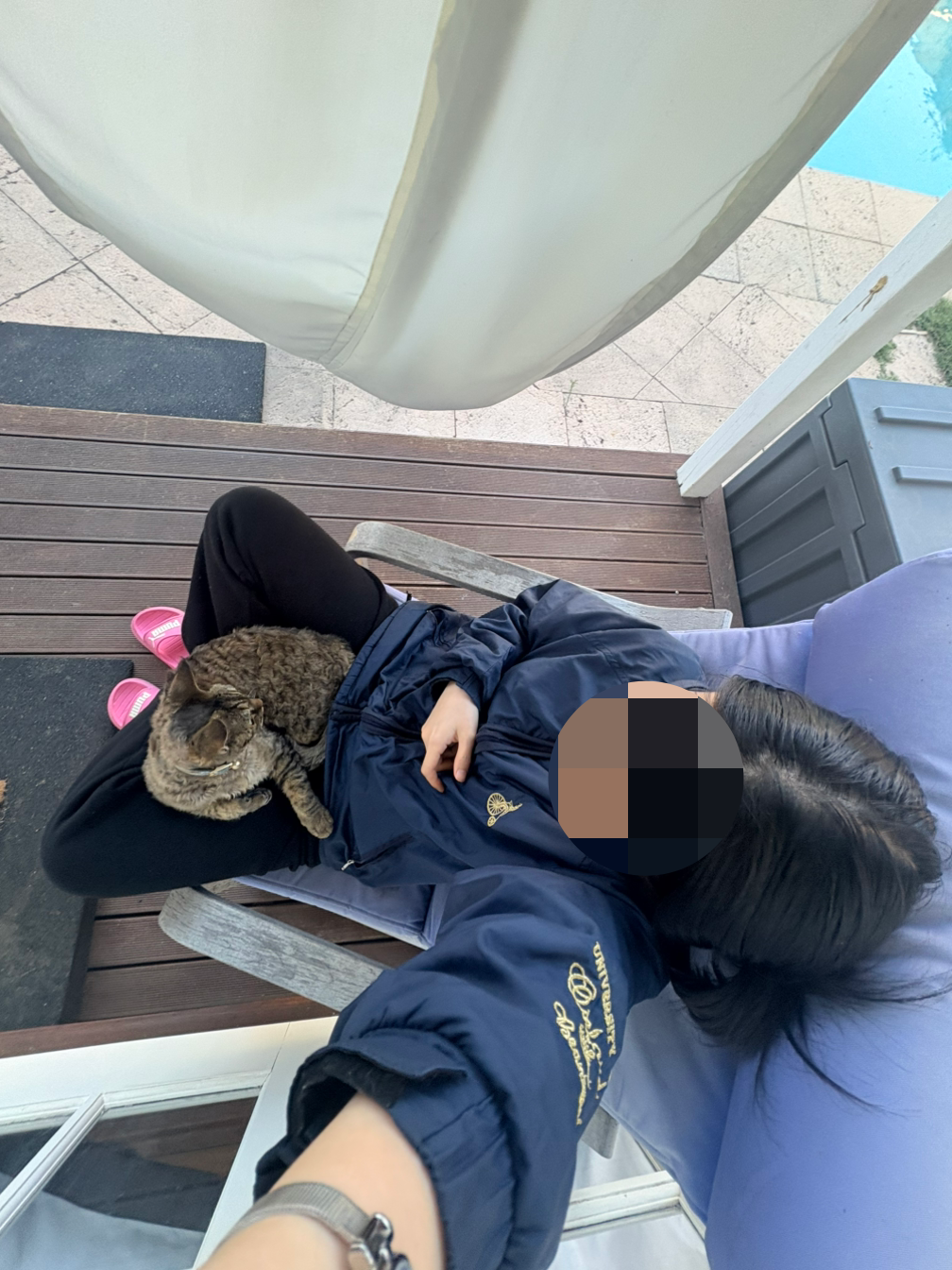 밥을 먹고 내 방 앞 의자에 앉아서 햇살을 만끽하는데 고양이가 내 무릎에 앉고선 30분이 넘게 안 일어나는 것이다. 그러다 고양이는 잠이 들었는데 웃기면서도 다리 저린 데 피지도 못하고 조금 난감했지만 어쩔 수 없이 깨웠다. 너도 내가 좋구나.