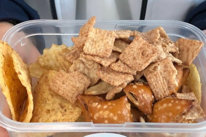 # 과자 5종(시나몬크런치, 아몬드비스코티, 피넛버터프레첼, 감자칩, 나쵸) = 약 6만 원