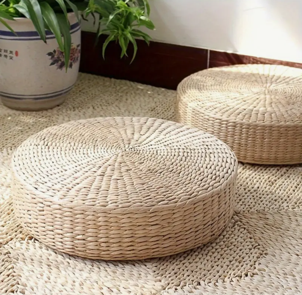 고민 끝에, 한옥의 정취와 잘 어우러지는 ‘라탄’ 소재의 방석을 선택했다. 직접 앉아보며 적당한 크기를 가늠해 보니, 40cm는 조금 넉넉하고 30cm가 가장 적당하다는 결론이 났다.