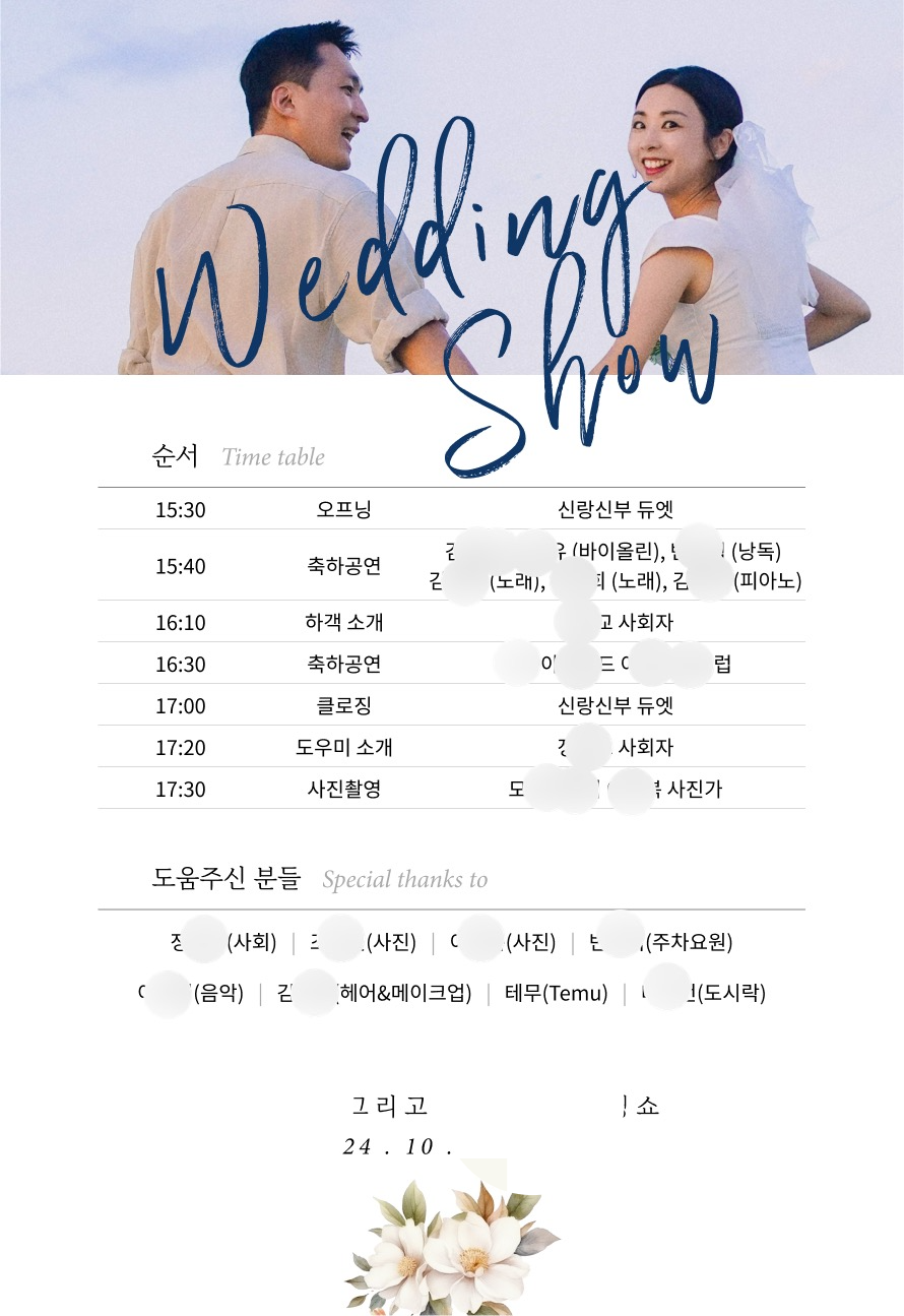 꼭 필요한 작업은 아니었지만, 오신 분들이 예식의 흐름을 이해하고 더 깊이 참여할 수 있도록 돕는 작은 배려이지 않았을까? 그들이 더 편하게 예식을 즐길 수 있다면 그것만으로도 우리에겐 의미 있는 작업이었다.