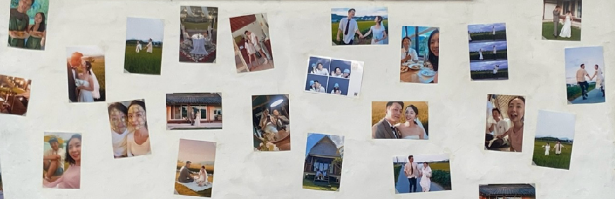 사진에 진심인 우리는, 예식장 곳곳을 우리의 사진으로 꾸미고 싶었다.