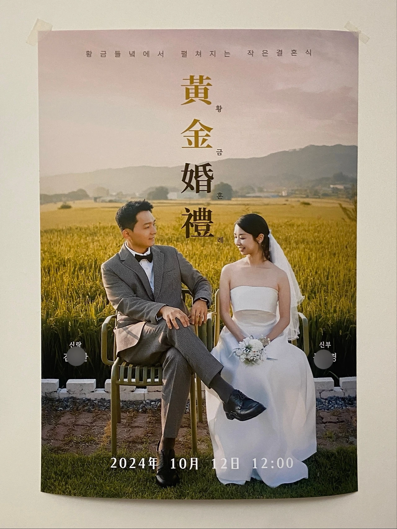 다만 입구에 놔둘 큰 포스터용 사진은 찍스에서는 인화가 불가해 다른 인쇄소에 맡겼다. 우리가 제작한 청첩장 1, 2부의 각 메인 컷을 60*90cm 크기로 인화해 영화 포스터처럼 세워 두기로 했었는데, 커다랗게 인화하고 보니 정말 우리 결혼식을 주제로 한 영화 포스터인 냥 멋있었다.