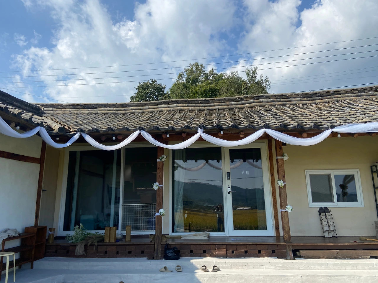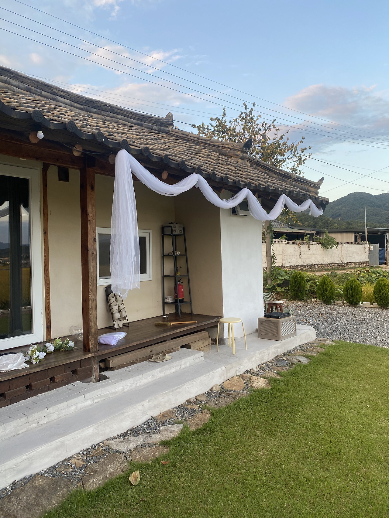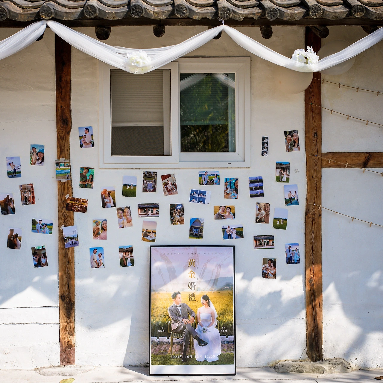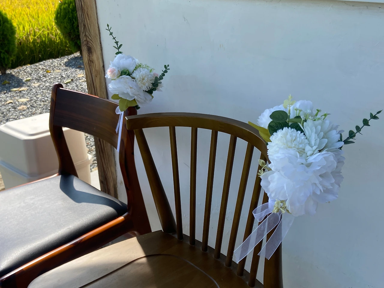 그날 오후에는 입구에 둘 결혼식 포스터 액자와 여분의 의자를 지인분께 빌려왔다. 포스터 액자는 외부에 뒀더니 사진 사이로 습기가 살짝 차는 것이 보여 실내에 보관하다가 당일에 꺼내기로 했고, 자갈마당에 놔둘 의자도 여유분으로 더 챙겨 왔다.