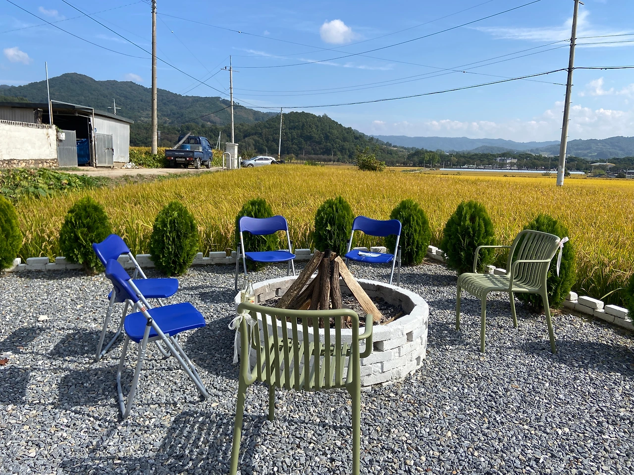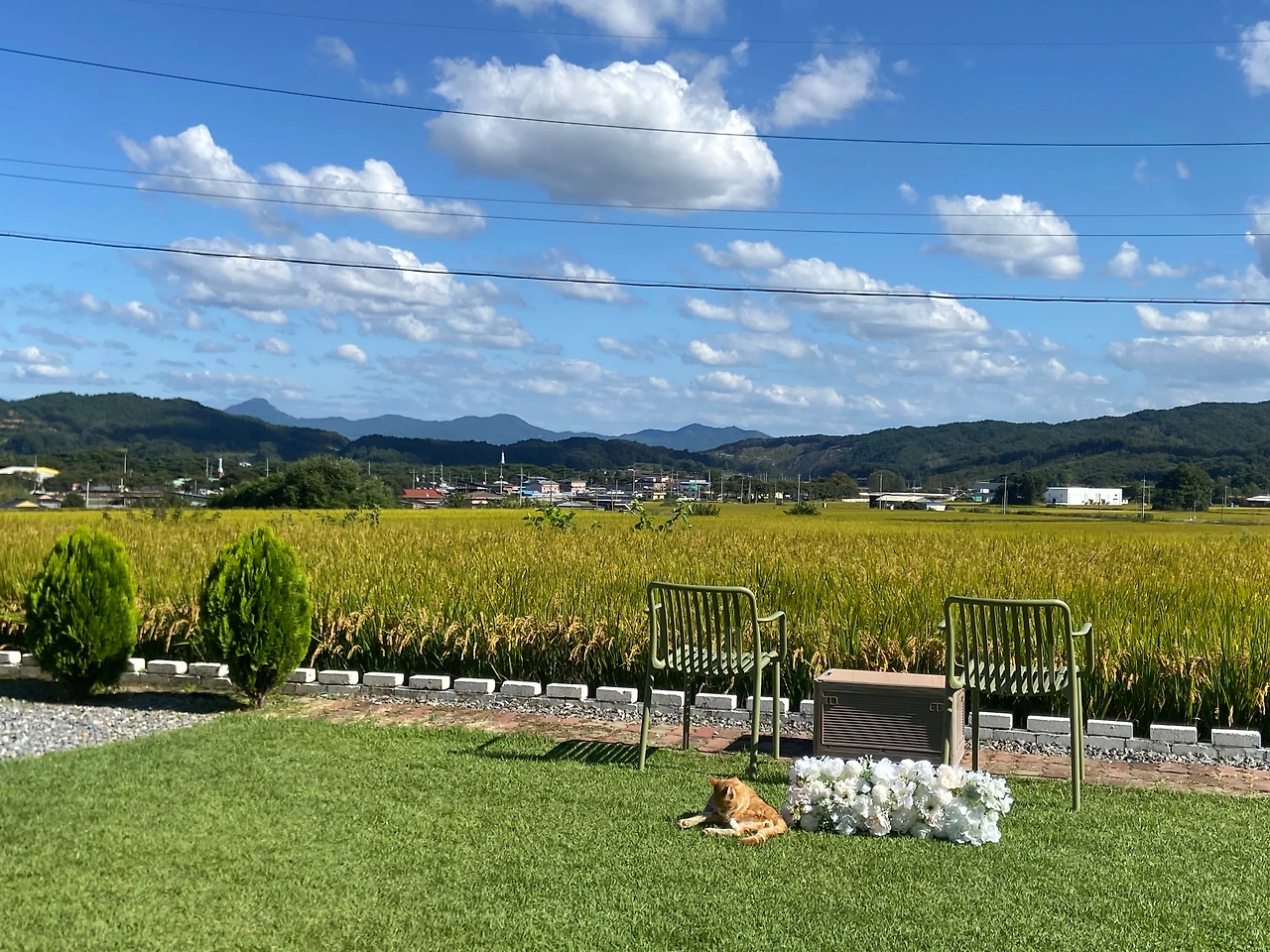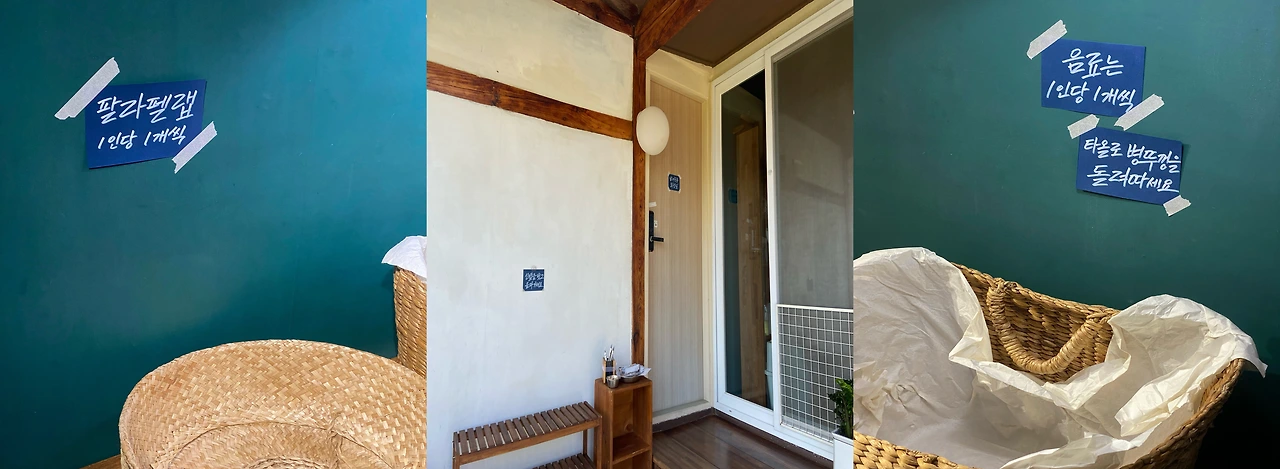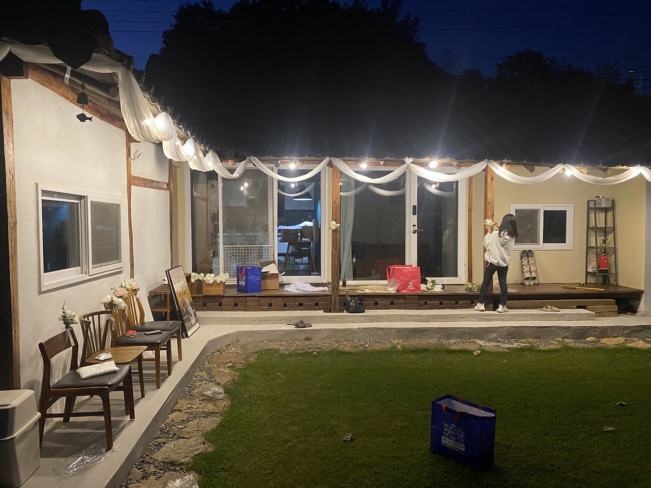 그날 오후에는 입구에 둘 결혼식 포스터 액자와 여분의 의자를 지인분께 빌려왔다. 포스터 액자는 외부에 뒀더니 사진 사이로 습기가 살짝 차는 것이 보여 실내에 보관하다가 당일에 꺼내기로 했고, 자갈마당에 놔둘 의자도 여유분으로 더 챙겨 왔다.