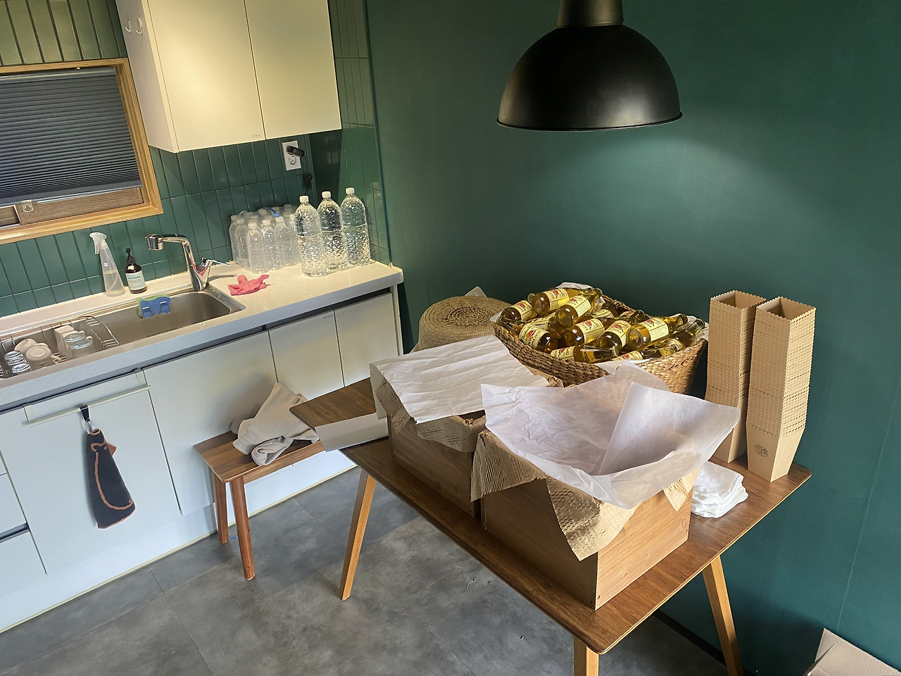 나는 주방의 가구와 소품 배치를 예식 당일 사용할 모습으로 바꿔 보았다.