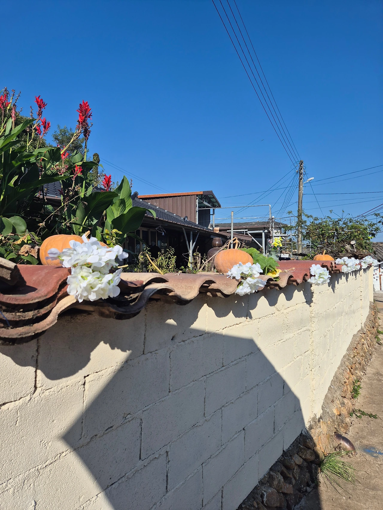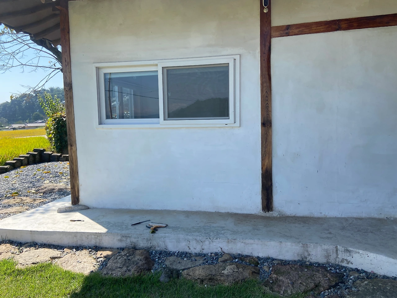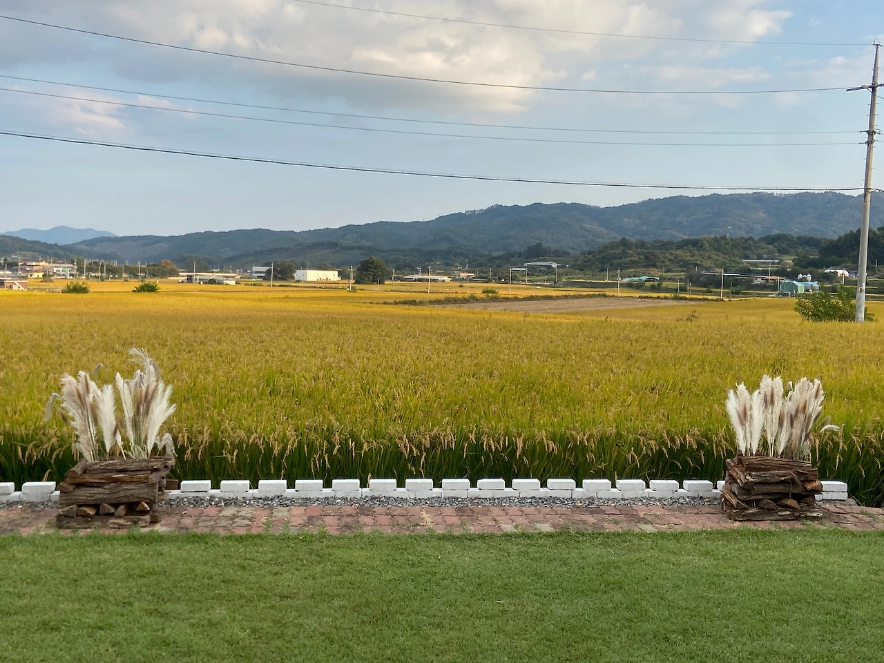 또한 미리 사둔 라탄 화병에는 강아지풀과 설악초, 부들을 꽂아 낡은 수돗가 위를 장식했고, 바람에 쓰러지지 않도록 감나무 아래에 있던 커다란 돌을 가져와 단단히 고정했다.