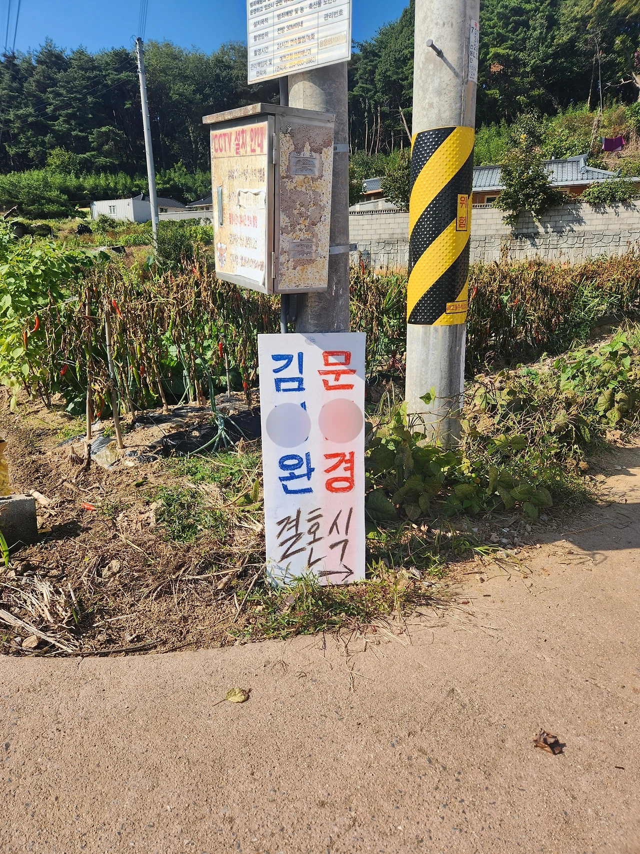 첫 번째 팻말은 숙소를 향하는 길가 첫 입구에, 두 번째와 포스터 액자는 숙소 입구 앞에 놓아 멀리서부터 손님을 반기도록 했다.