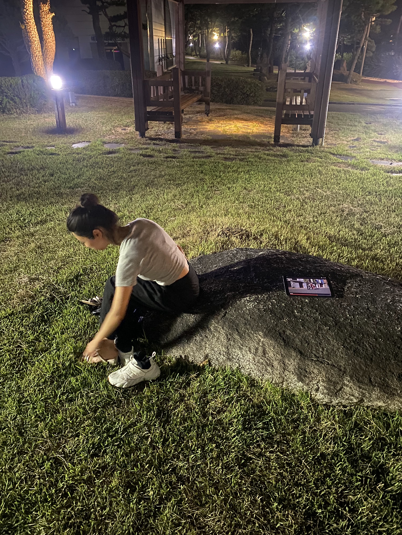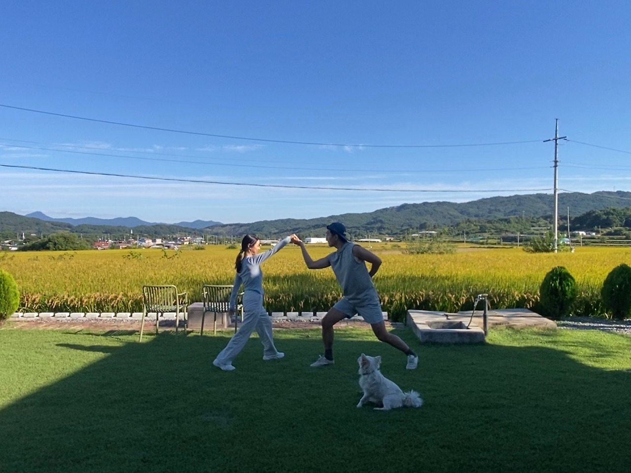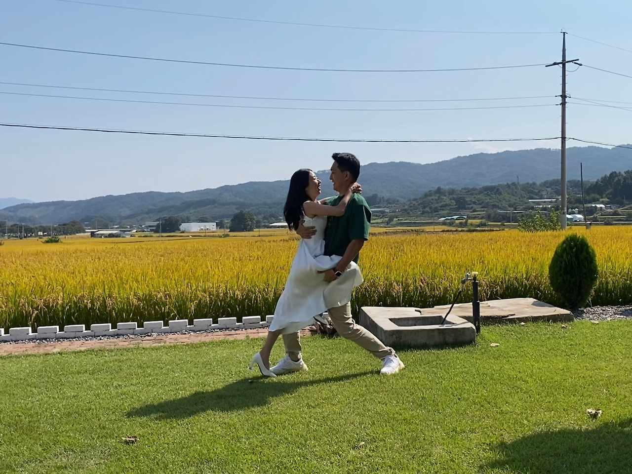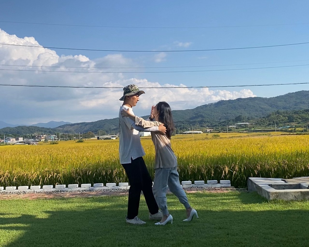 예식 5일 전부터는 실제 무대가 될 잔디마당에서 연습을 시작했다. 처음으로 핸드폰을 고정해 두고 춤추는 모습을 영상으로 담아보았다.