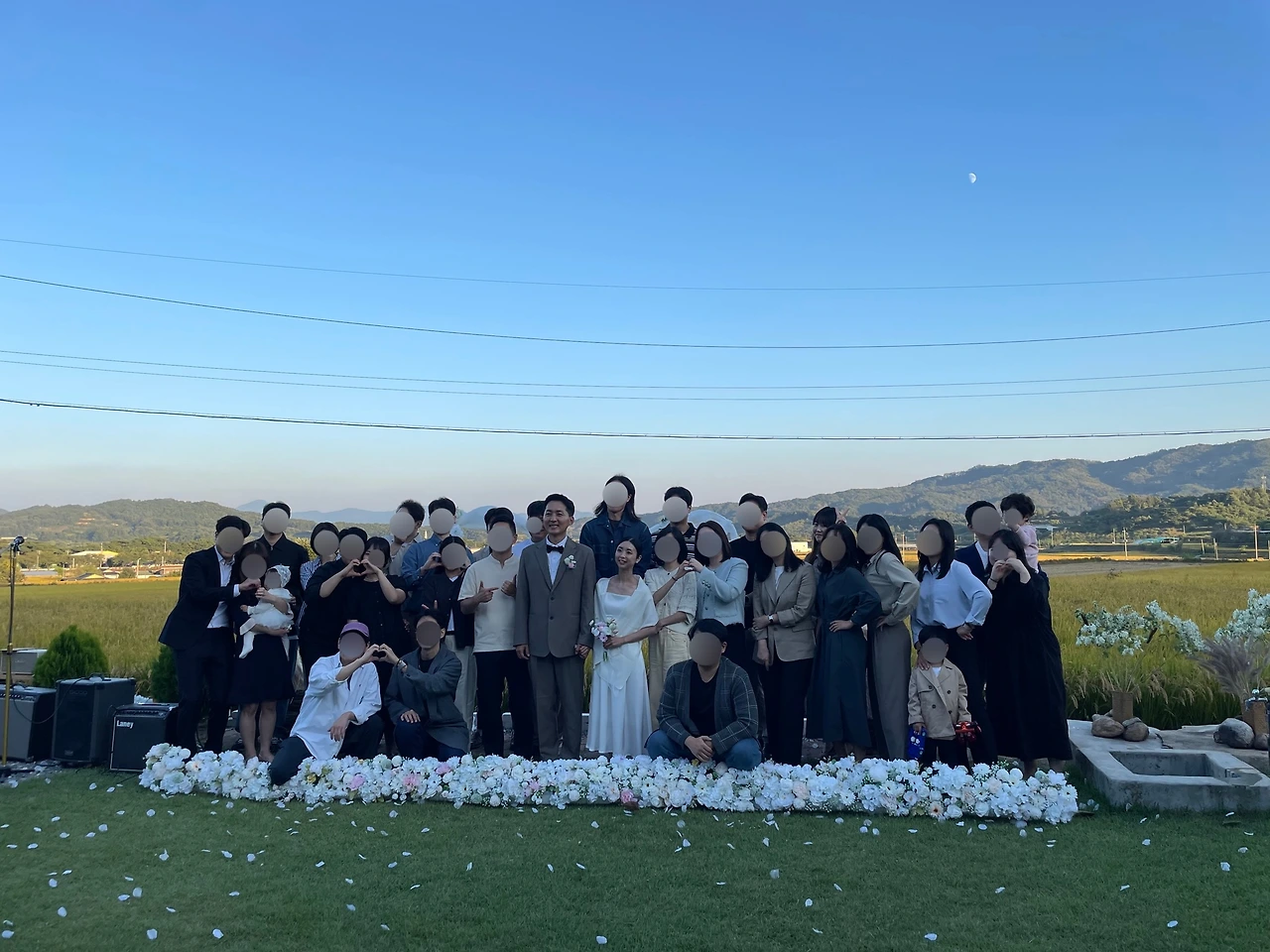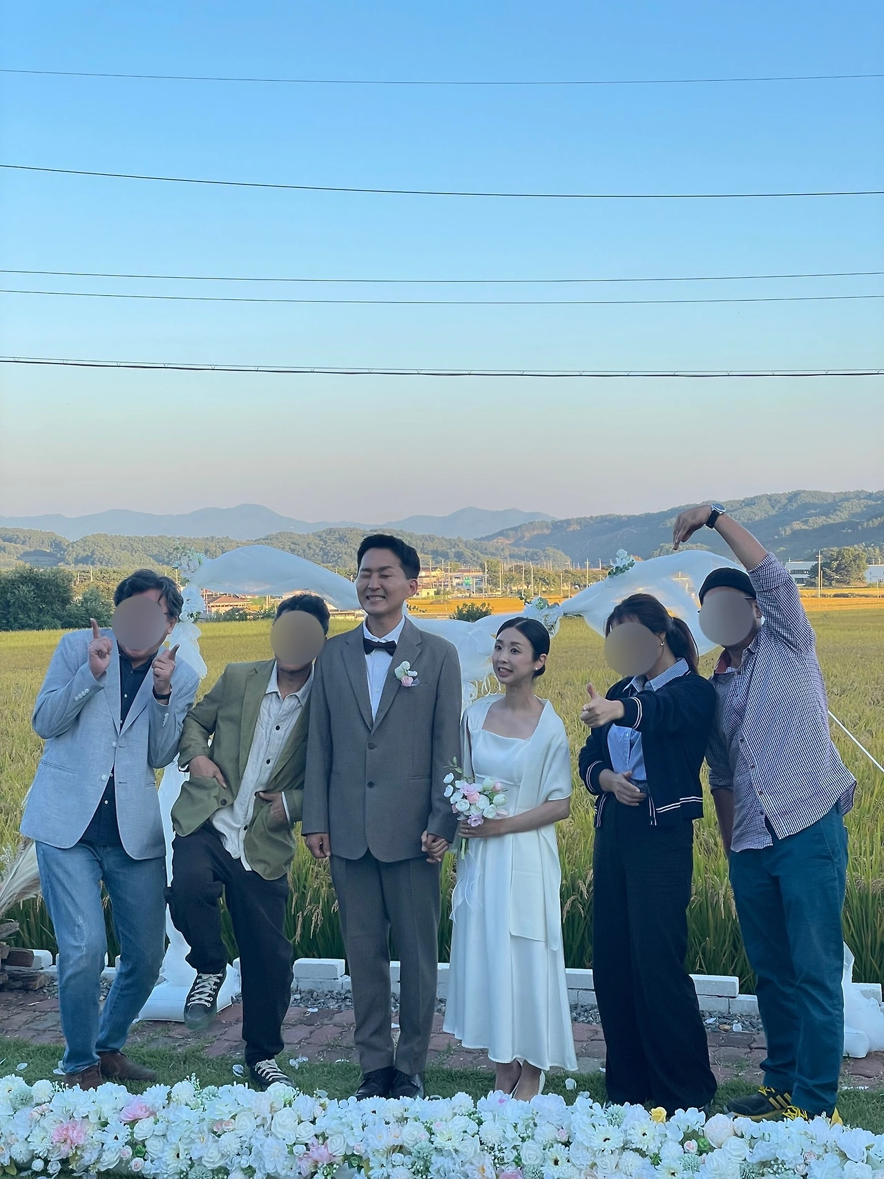 그 사이 밴드팀은 음향장비와 악기를 정리했고 하객들은 잠시 자리에서 일어나 탁 트인 논 풍경을 바라보며 느긋하게 담소를 나눴다.