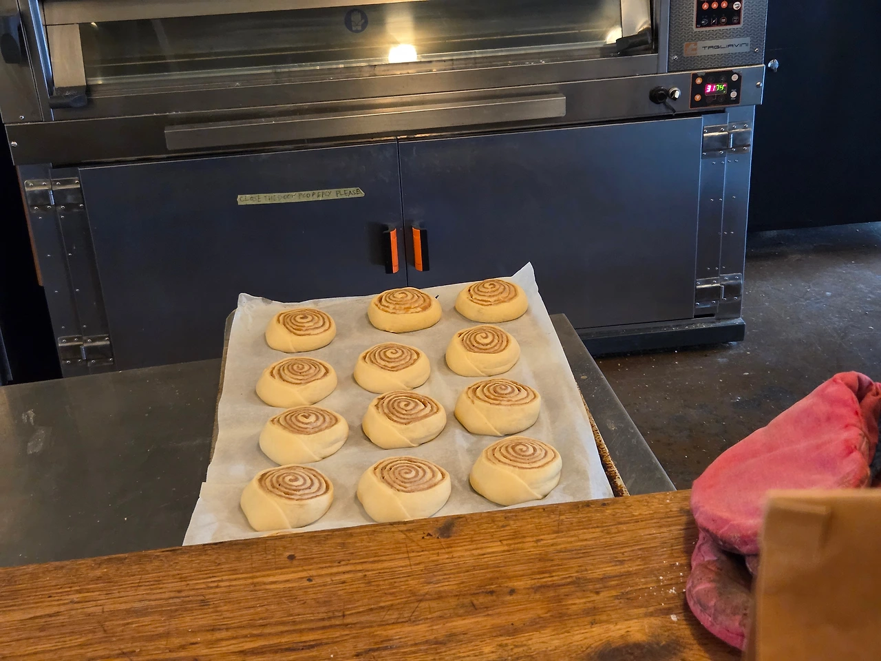 차로 다른 지역으로 이동을 하면서 관광을 할 거였는데, 중간에 점심을 먹을 곳이 마땅치 않은 것 같아, 점심으로 먹을 크로와상 샌드위치 2개를 사고, 시그니처인 시나몬 롤도 2개 샀다. 그냥 플레인 시나몬롤은 품절이라서 (아침이었는데도 품절이었다...) 뭔가 토핑이 첨가된 시나몬 롤을 샀다.