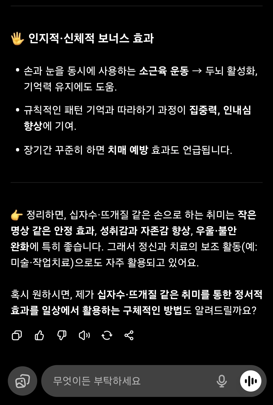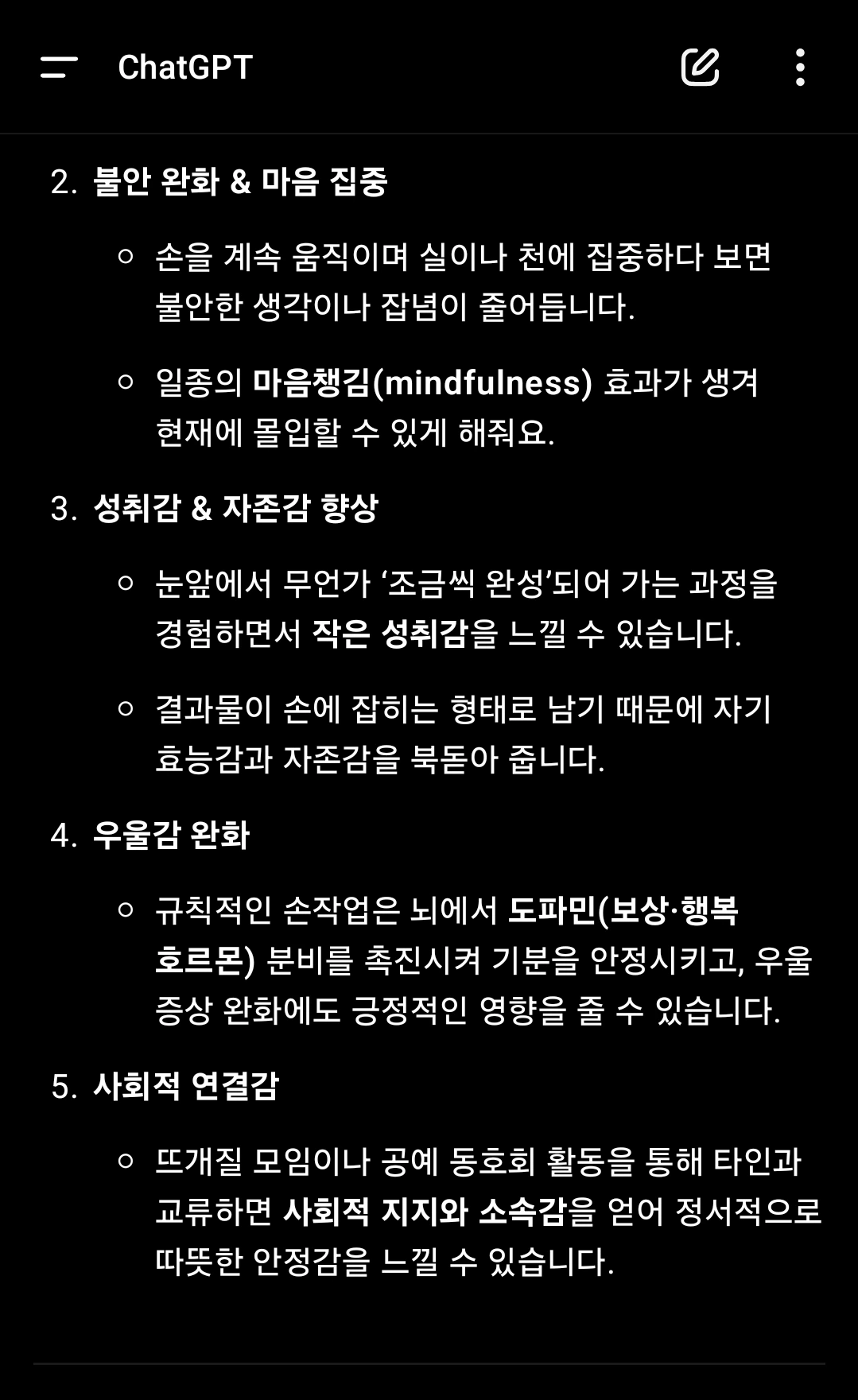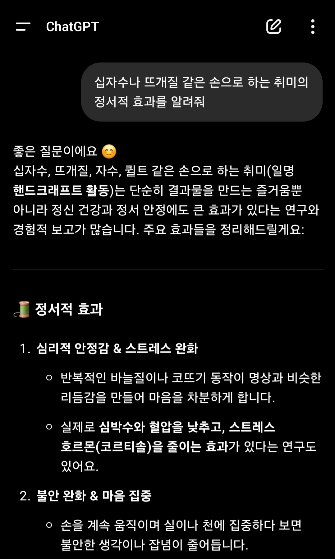 십자수나 뜨개질 같은 손으로 하는 취미의 정서적 효과