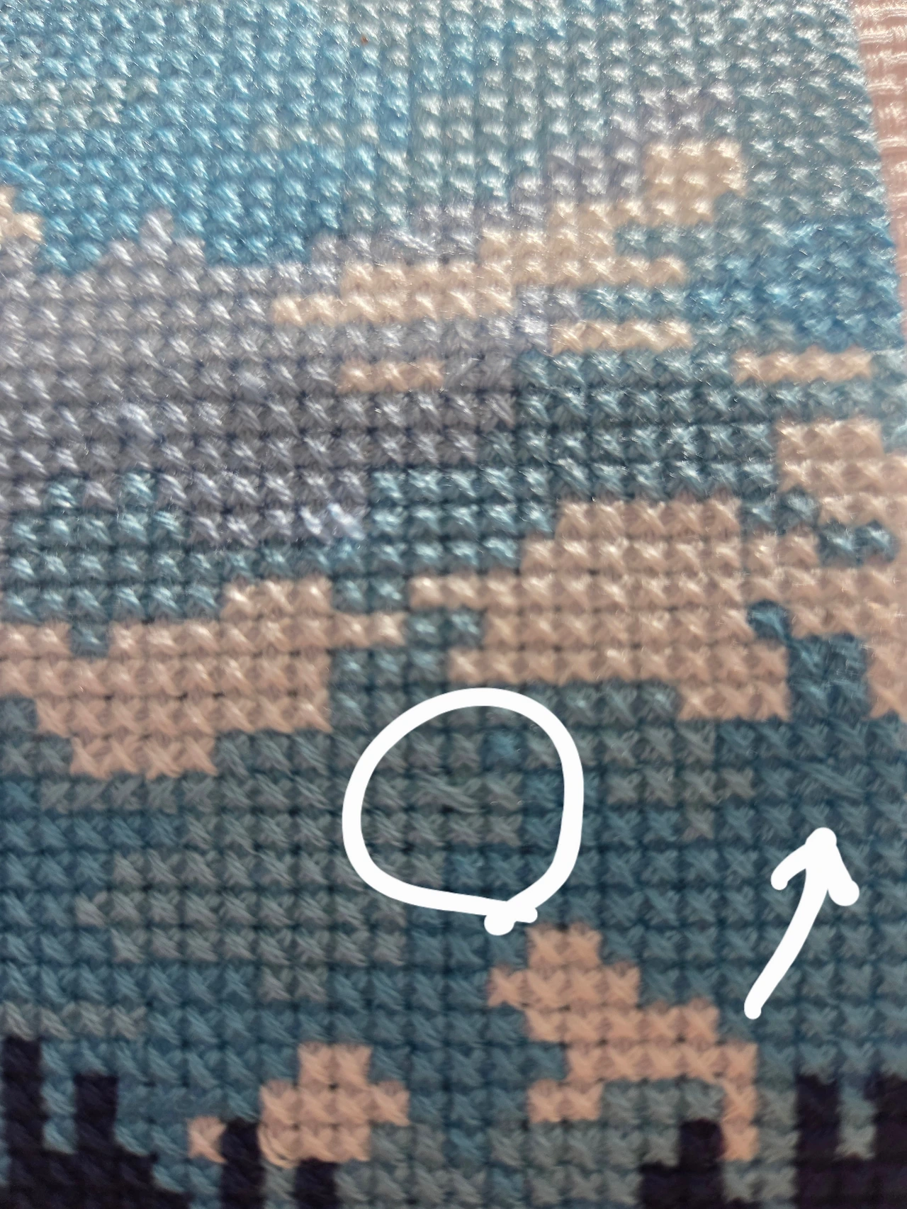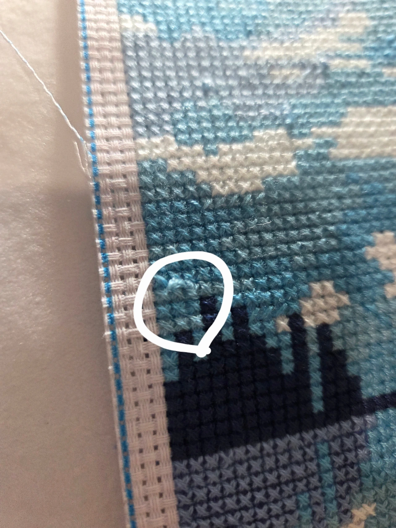 자세히 보면 실이 튀어나온 부분도 있고 (수습해보려 했으나 실패했다), 한 칸에 건너뛰고 진행한 것도 있다.