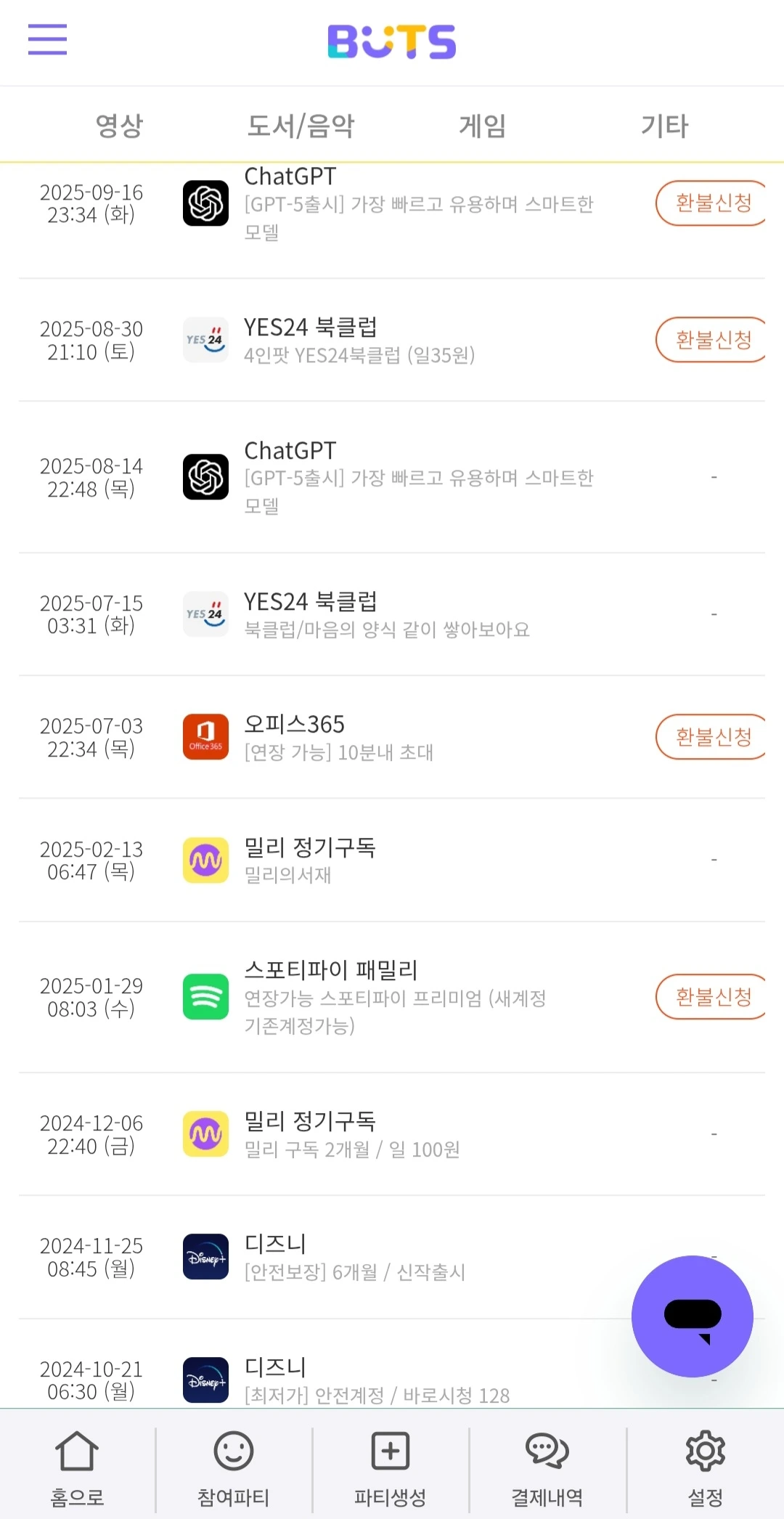 지금은 남편 스포티파이 결제를 해줬고, 내가 ms오피스, chat gpt, yes24 북클럽을 쓰고 있다. 한 달 정도만 짧게 필요한 경우에 단타로 치고 빠지기 편해서 좋다. 실제로 내가 별도로 각 플랫폼을 하나씩 가입하면, 필요한 기간이 지나고 나서 해지를 해야되는데, 깜빡하고 지나가기 쉽다. 그리고 가격도 내가 혼자서 결제하는 것보다 훨씬 저렴하다.