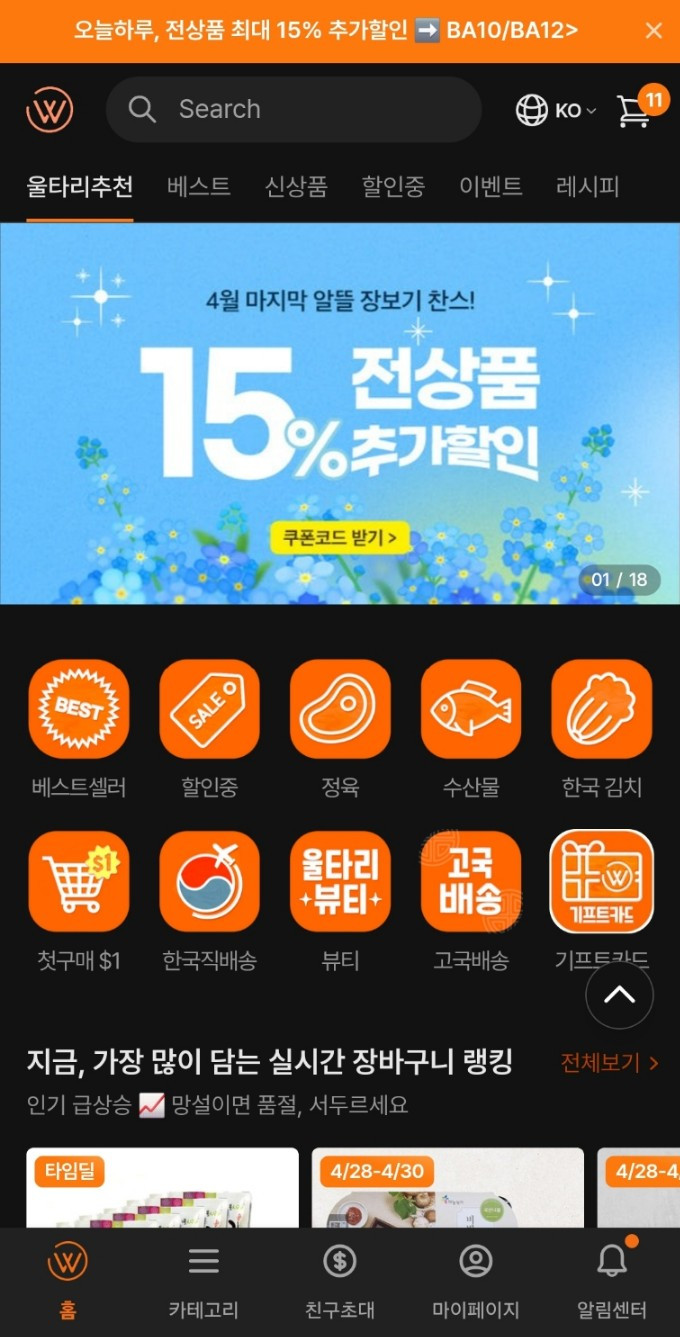 최소 금액도 39달러인가 49달러로 낮아서 좋고, 배송도 빠르다. 아시아 마켓이라서 한국 제품의 수는 울타리보다 적고 대신에 일본이나 중국 제품도 꽤 있다.