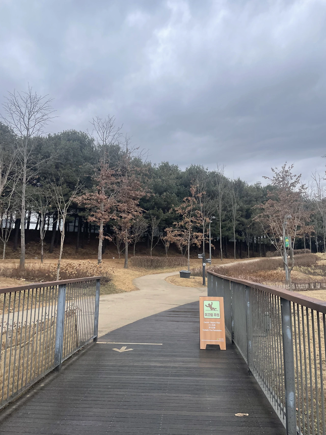 미끄럼 주의 표지판이 눈에 들어왔다.
