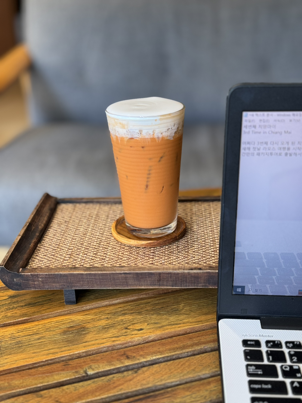 그리고 여행 가서 카페 투어가 무엇보다 중요한 저에게 치앙마이는 꽤 괜찮고 준수한 카페가 많이 있습니다. 그리하여 도착한 이후부터 거의 매일 숙소 근처의 괜찮은 카페를 찾아다니며 오전의 커피 타임을 즐겼습니다. 그리고 좋아하는 타이 밀크티가 보이면 사 먹고 과일 스무디도 하루에 2개씩 챙겨 마시기도 하고 그렇게 보내고 있습니다.