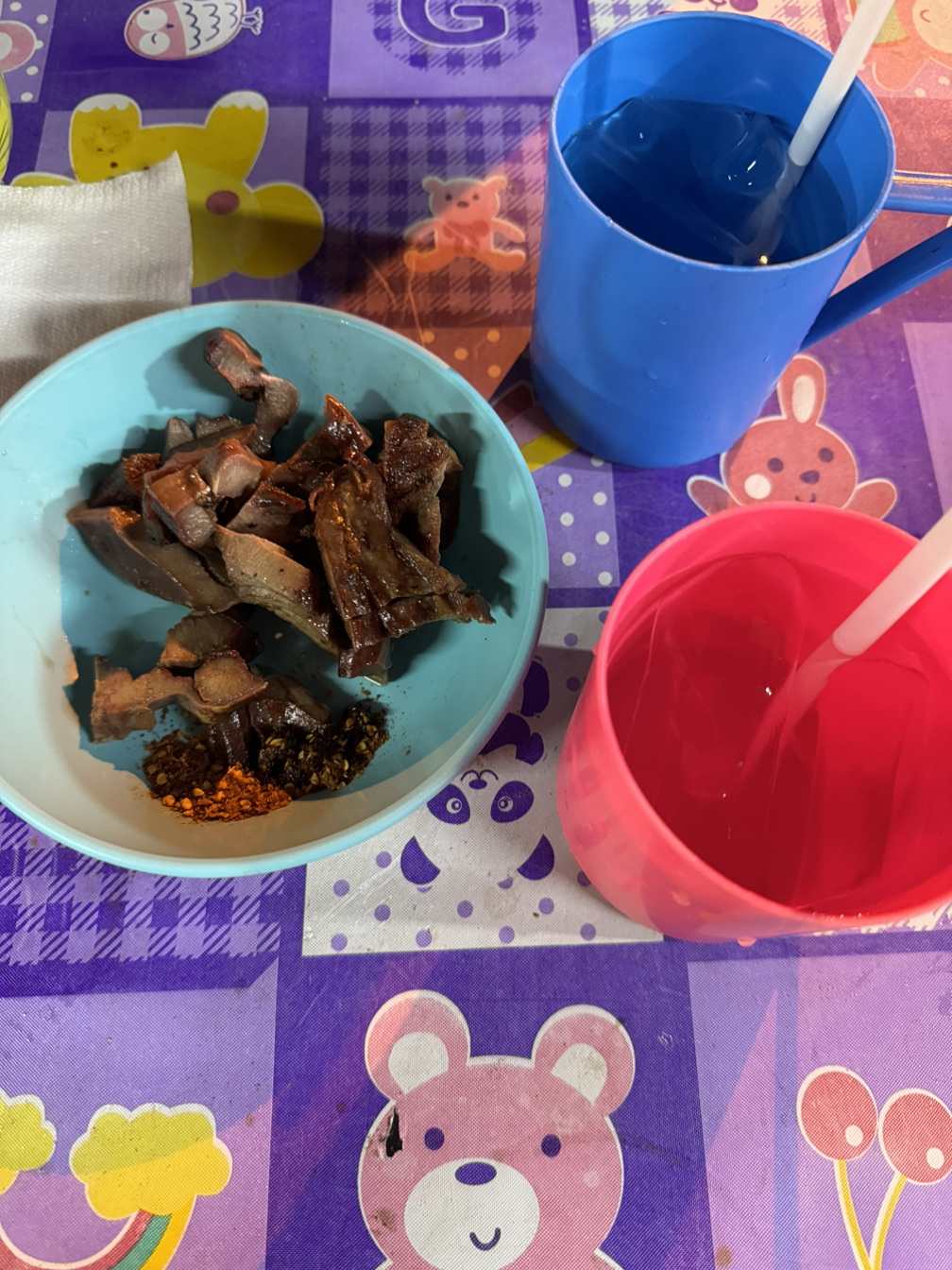 배가 고파서 고기를 조금 샀고. 그걸 근처 옆 가게