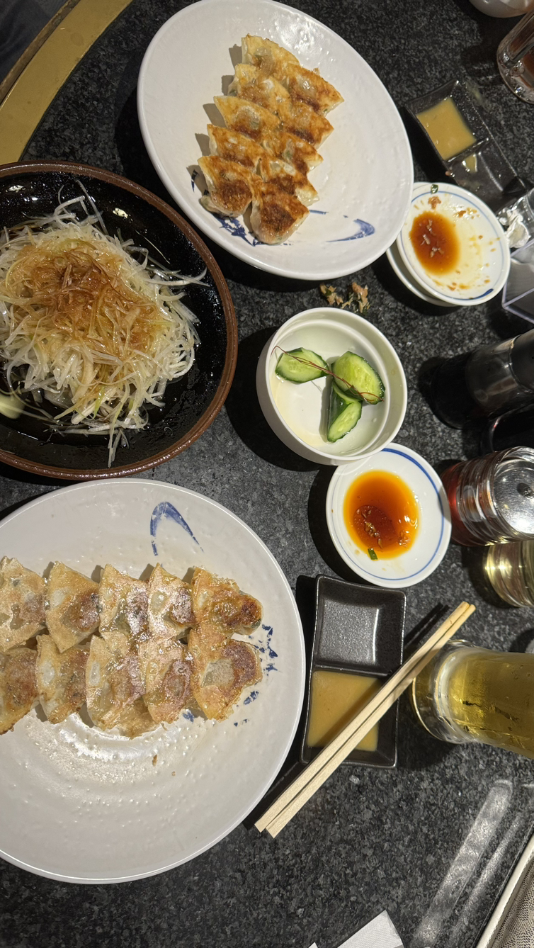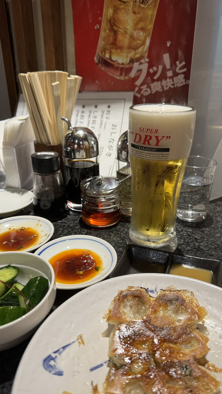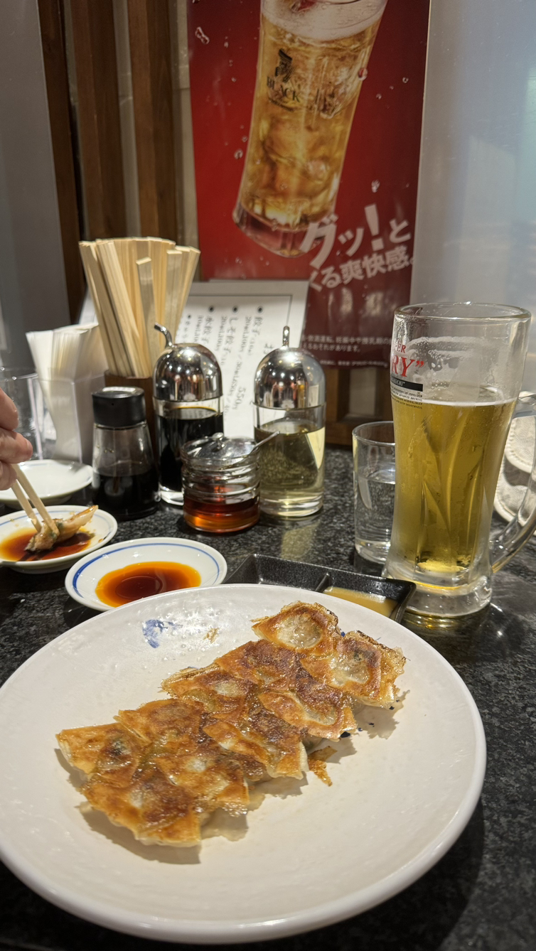 뭔가 쌀쌀한 밤이지만 교자에 생맥주를 마시지