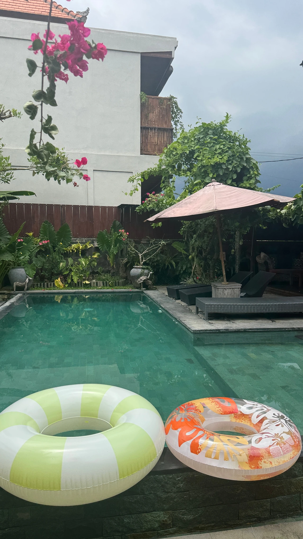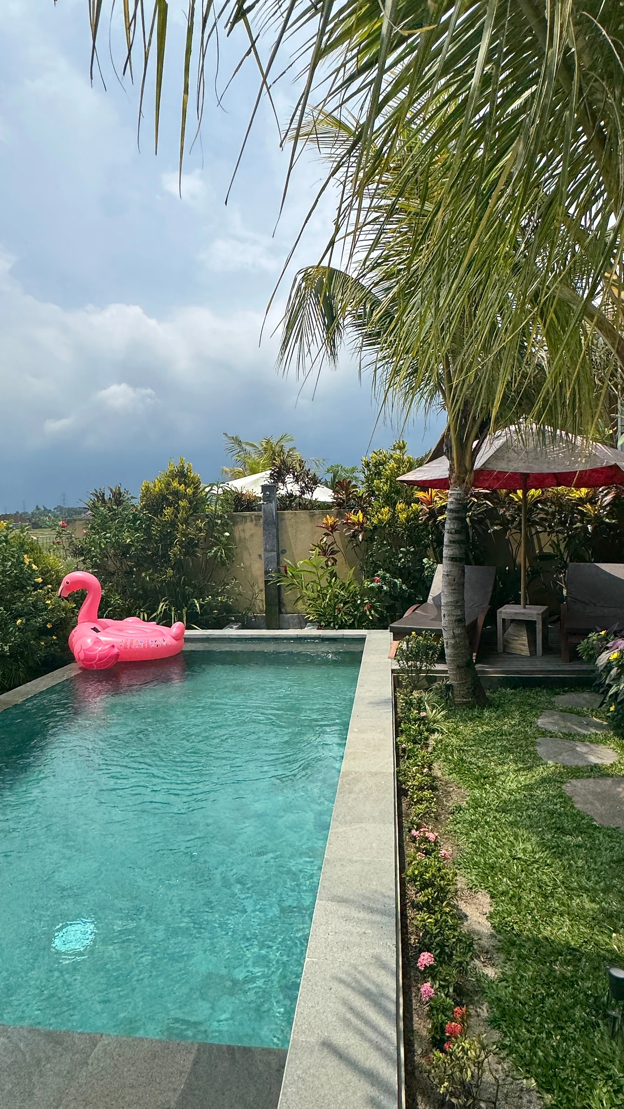 스미냑에서 발품 팔아가면서 찾은 곳이고 우붓 센터가 아닌 우붓 남부라서 조용하고 시골스런 분위기이고 원하는 수영장이