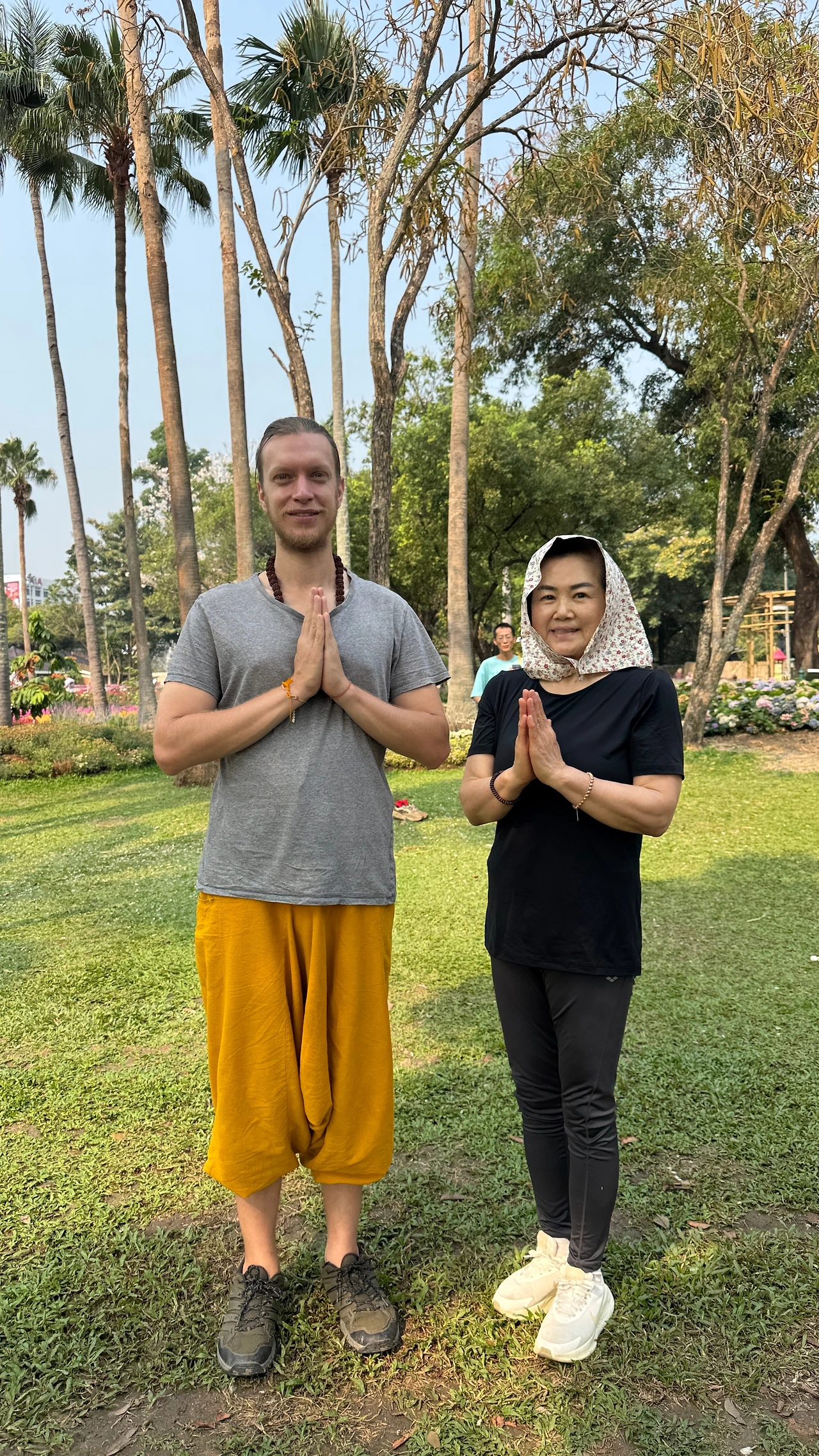 어머니에게 항공권을 선물해서 같이 명상센터에서 지내고 있습니다.