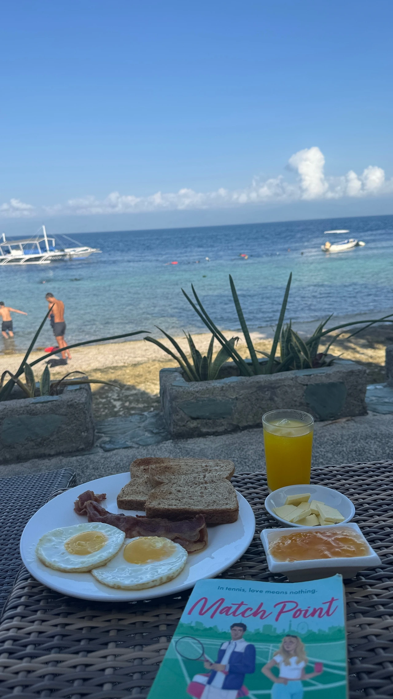 아침에 일찍 일어 나서 바닷가와 함께 합니다. 조식을 기다리면서 여유를 즐기는 시간.