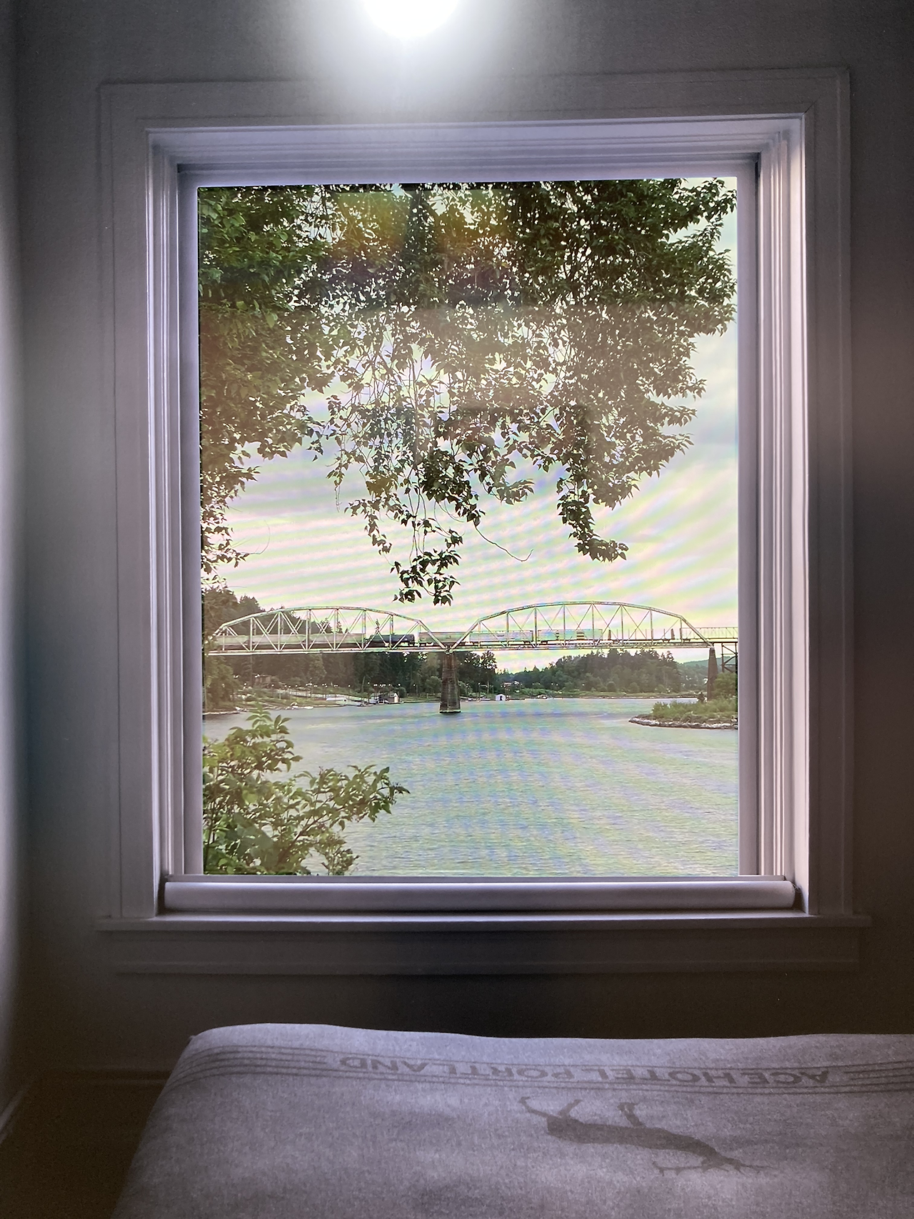 ACE HOTEL PORTLAND 적혀 있는 침대보