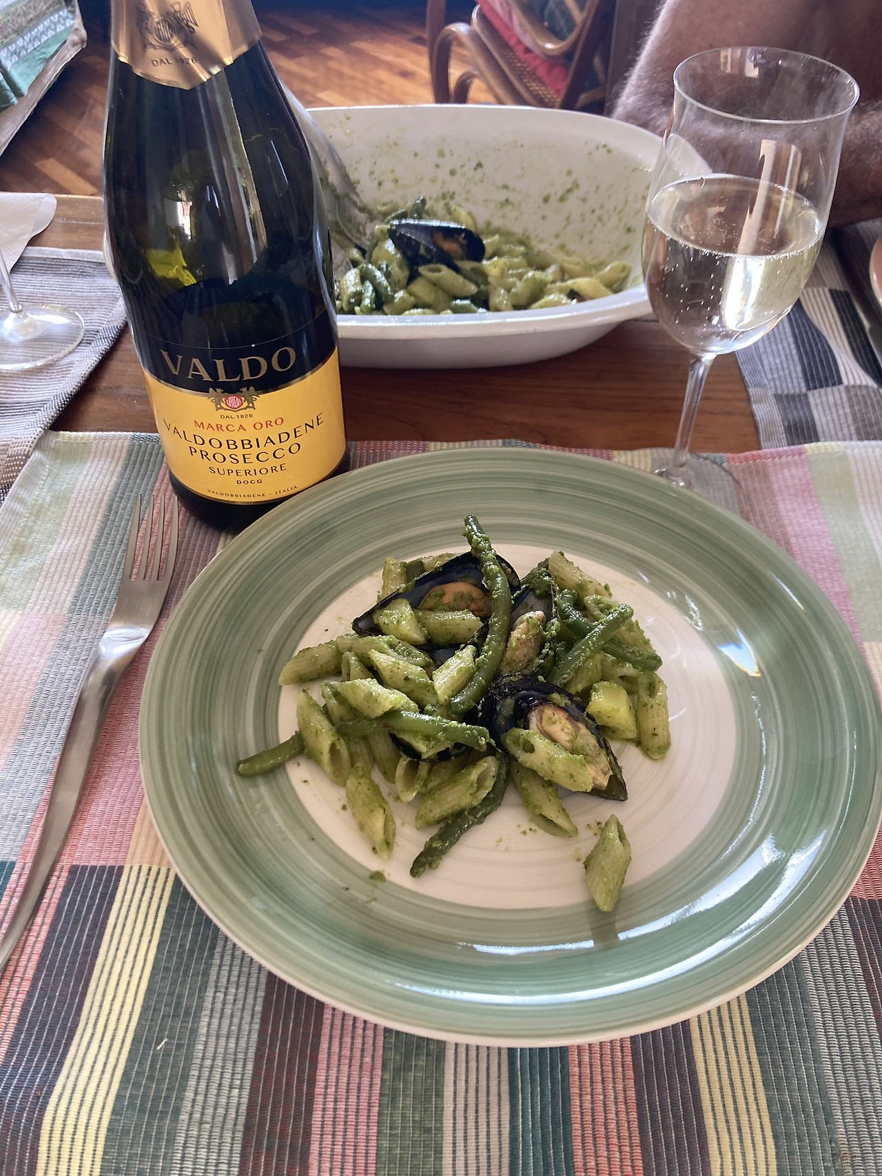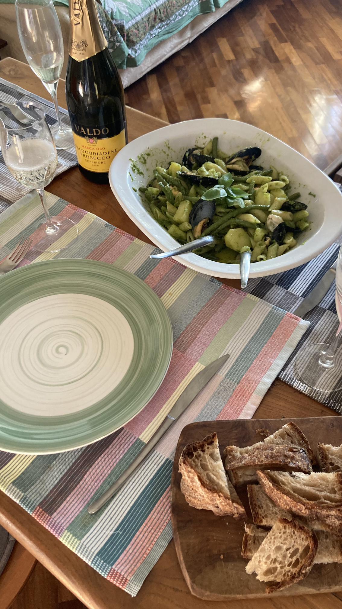 늘 파스타와 바게트, 하몽 , 치즈 그리고