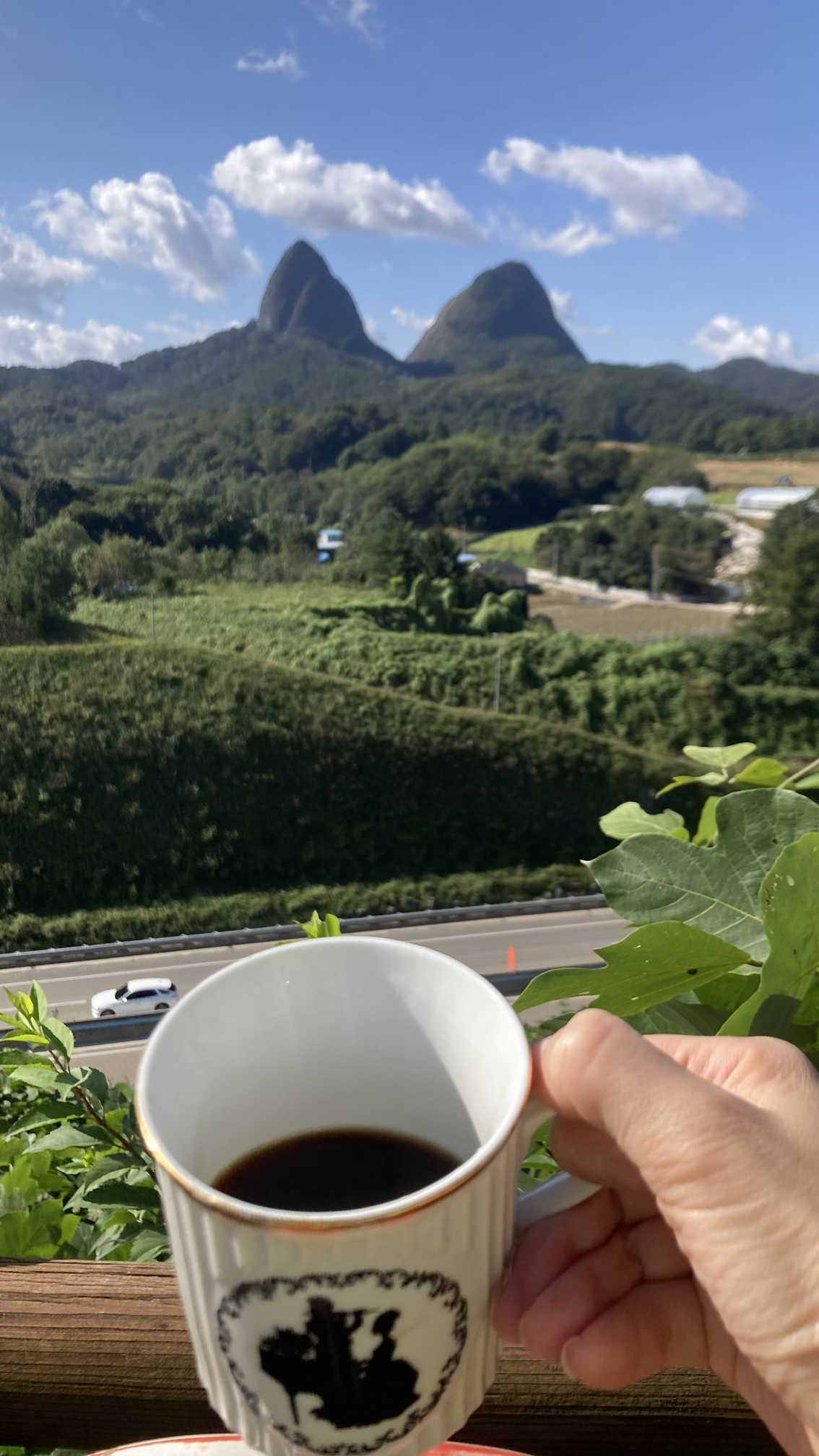 휴게소에 머무르며 마이산을 잠시 바라보기로 하고 미리 준비해 간 드립백과 보온병, 잔까지 챙겨서 전망대로 올라갑니다.