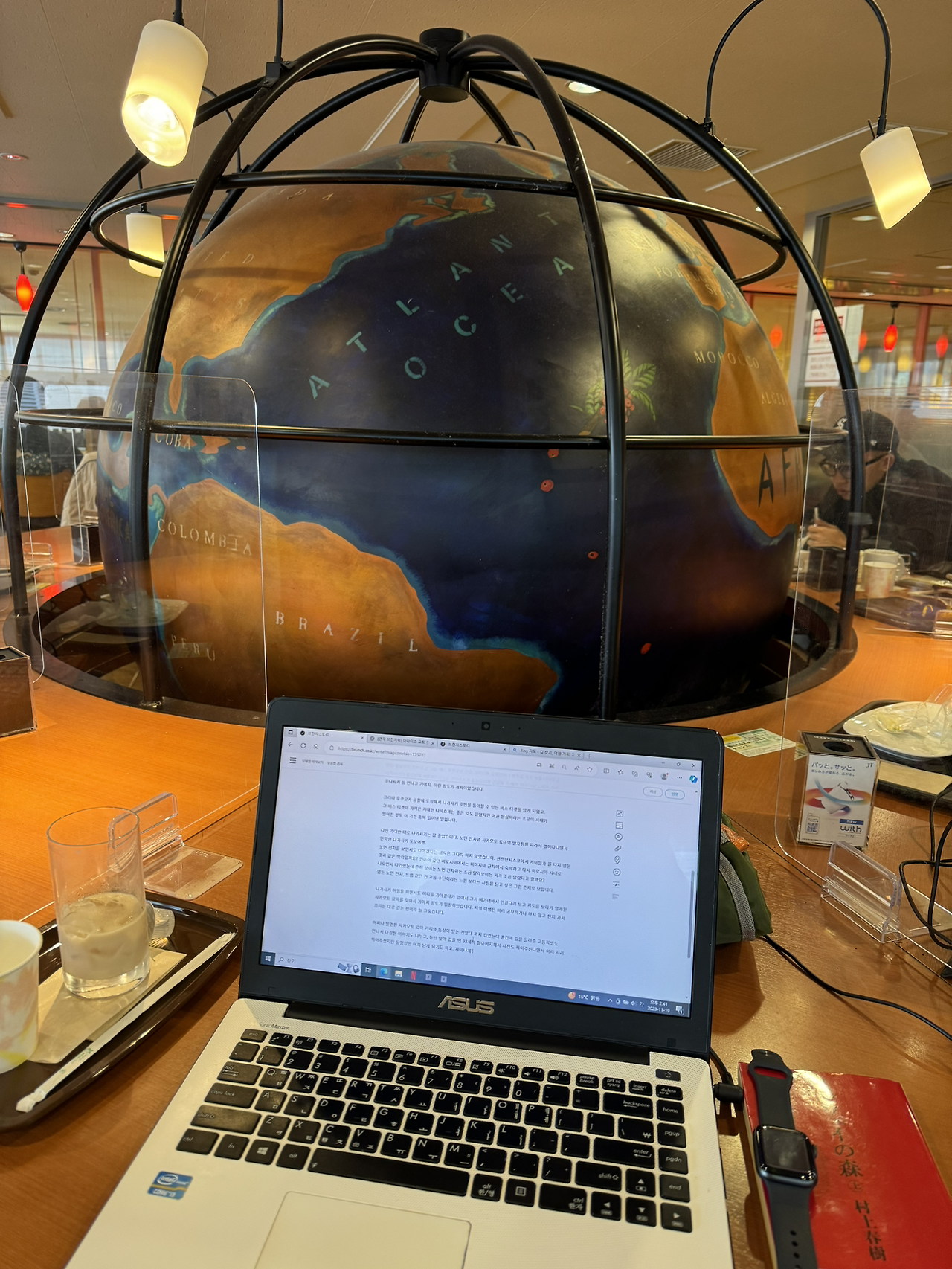 현지 친구들과 조용히 입 다물고 글 쓰는 시간을 가지는 일요일