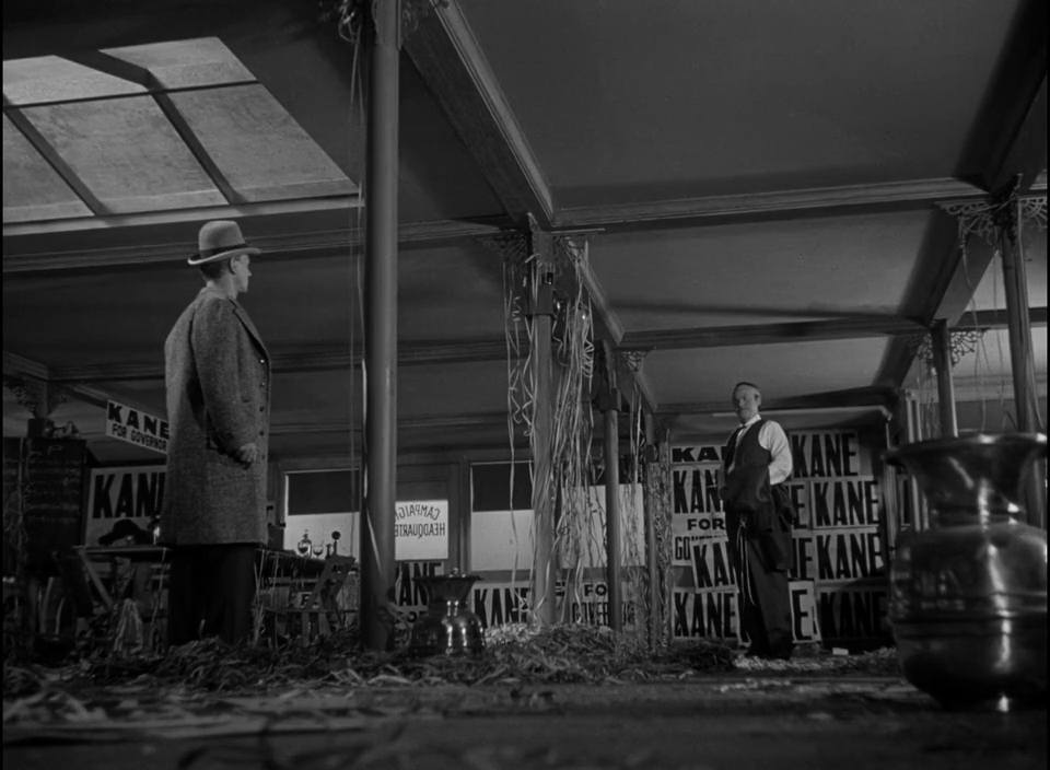 5명의 회고 또는 회상의 플래시백을 통해 케인의 생애를 들여다보는 구성입니다. 케인의 삶이 소년기부터 노년기까지 연대기 순으로 펼쳐지는 편이지만 이것은 5명의 시선을 거친 다면적인 접근입니다. 이때 이 5명은 각자의 입장에서, 자신이 겪었던 범위 안에서 케인에 대해 말합니다. 영화 속 어느 누구도 케인의 생애 전체를, 케인의 모든 것을 알지 못하는 것이지요. 이런 경우 관객이 전지적 관찰자가 되기도 하지만 <시민 케인>에서는 아닙니다. 케인에 대해 명확히 알지 못하는 것은 관객들 또한 마찬가지입니다. 관객들은 특집 뉴스를 보며 케인의 주요한 삶의 궤적을 확인하고, 이후 주변인들의 회고로부터 사적인 삶까지 들여다 보게 되지만 찰스 포스터 케인이라는 이 인물에 대해 속시원히 알지는 못합니다. 심지어 로즈버드에 관해서도요.