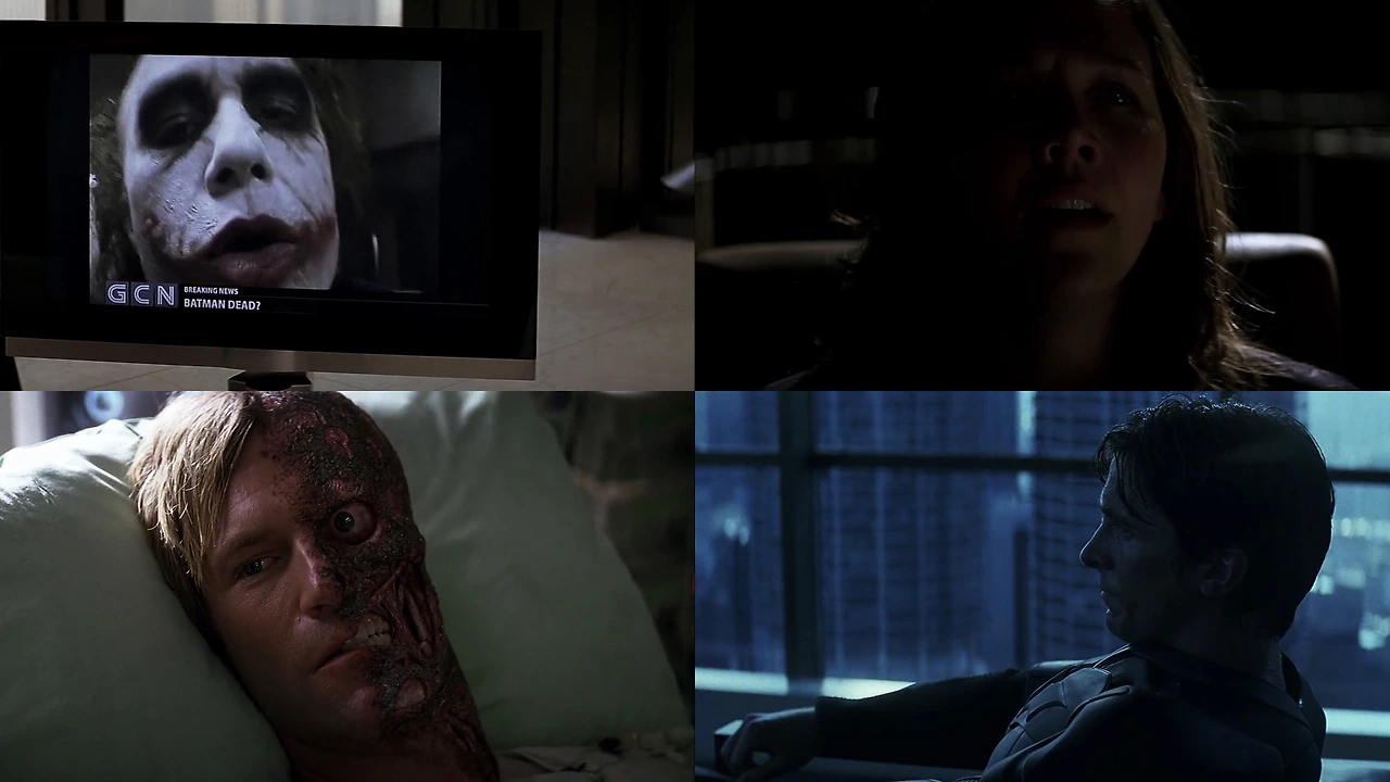 그럼 이번에는 <다크 나이트>를 볼까요. 배트맨인 브루스 웨인은 고담시에서 뿌리 깊은 악의 세력을 몰아내고자 합니다. 악인들이 늦은 밤에도 마음껏 활개 치고 다니지 못하는 걸 보면 브루스 웨인의 목적은 어느 정도 이루어져 가는 듯합니다. 고든 경사와 협력한 마피아 소탕 작전이 꽤나 진척이 되어가던 무렵 느닷없이 괴인 조커가 나타납니다. 조커는 궁지에 몰린 마피아들에게 자금의 반을 주면 배트맨을 죽여주겠다며 거래를 제안합니다. 이후 더욱더 궁지에 몰린 마피아 일당은 결국 자신들의 자금을 훔치기도 한 눈엣가시 조커와 손을 잡게 되는데요. 그동안 경찰과 검찰이 사법권 바깥에 있는 배트맨을 등에 업고 있었다면, 음지에서 자신들의 세력을 확장해온 마피아 세력이 경찰도 배트맨도 개의치 않고 제멋대로 구는 천둥벌거숭이 조커와 손을 잡게 된 셈이죠. 이렇게 선과 악의 힘이 대등한 상태로 서로 대립하게 되는 선악 대립 구도가 형성됩니다. 여러 차례 말씀드린 중심 갈등 구도가 마련되었습니다. 그럼 여기서 주인공인 배트맨, 브루스 웨인을 짚어볼까요? 배트맨은 다른 수퍼 히어로들과는 다르게 초능력이 없습니다. 우리와 같은 평범한 인간이지요. 어마어마한 재력가이지만 어릴 적 밤거리에서 건달들에게 부모를 잃어 심리적 결핍이 있습니다. 이런 설정이 관객으로부터 연민과 동질감을 불러일으킵니다. 그리고 현재는 배트맨으로서도 고담시에 영향력을 미치고 있습니다. 즉 브루스 웨인은 아리스토텔레스가 설명한 ‘우리보다 조금 나은 사람이 명망과 번영을 누리고 있는 상태’에 있는 듯합니다. 조커는 그런 그를 정체를 밝히지 않으면 더욱더 많은 사람을 죽이겠다고 협박하며 궁지로 몰아세웁니다. 그러한 과정에서 배트맨의 명예에는 금이 가고, 연모하던 여인 레이첼이 죽고, 고담시의 ‘백기사’ 하비 덴트는 증오심에 가득 찬 사람으로 변해버립니다. 그저 좋은 일을 하고자 했을 뿐인데 너무 많은 것을 잃어버렸습니다. 조커는 결국 패배하게 되지만, 배트맨은 더욱더 깊은 음지에 숨을 수밖에 없는 처지가 됩니다. 이야기의 전개 역시 브루스 웨인이 끊임없이 곤란한 상황에 처하며 연민을 자극하는 구도입니다. 반면 <다크 나이트>에는 <올드 보이>와는 다르게 ‘자기도 모르게 저지른 실수’가 없습니다. 배트맨을 괴롭히는 조커의 개인사가 그려지지 않기 때문에 조커가 왜 그렇게 배트맨을 못살게 구는지 알 수 없습니다.