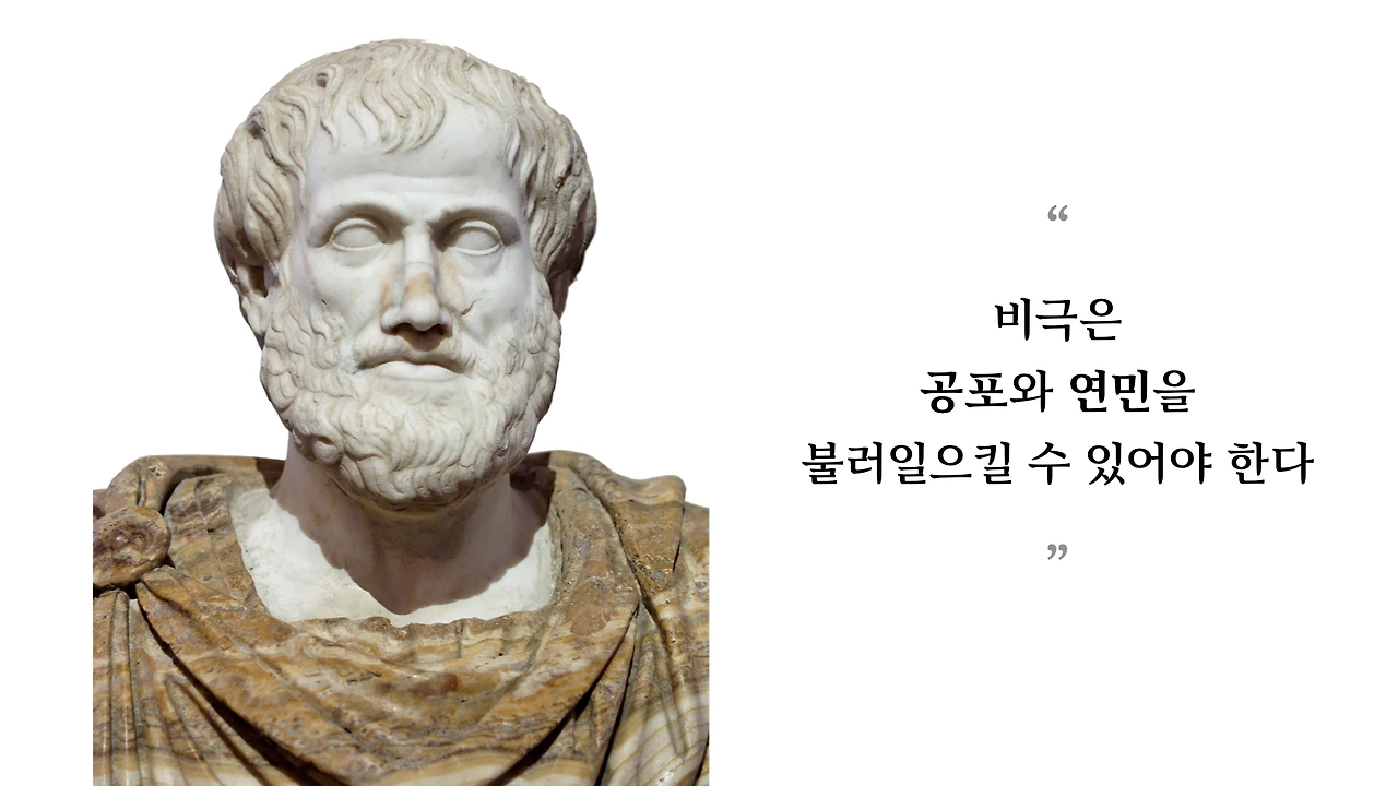 아리스토텔레스의 『시학』은 시나리오 작가들이 여전히 본받고 있는 극작술에 관한 고전 텍스트인데요. 특히 비극에 관한 논의가 그렇습니다. 아리스토텔레스는 『시학』 13장에서 훌륭한 비극의 플롯은 공포와 연민을 불러일으킬 수 있어야 한다고 말합니다.