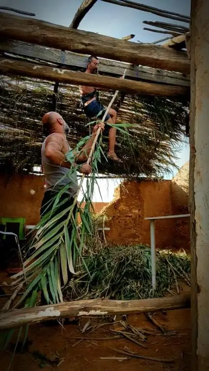 대나무로 지붕을 만들고 있는 Giorgio와 Jonny