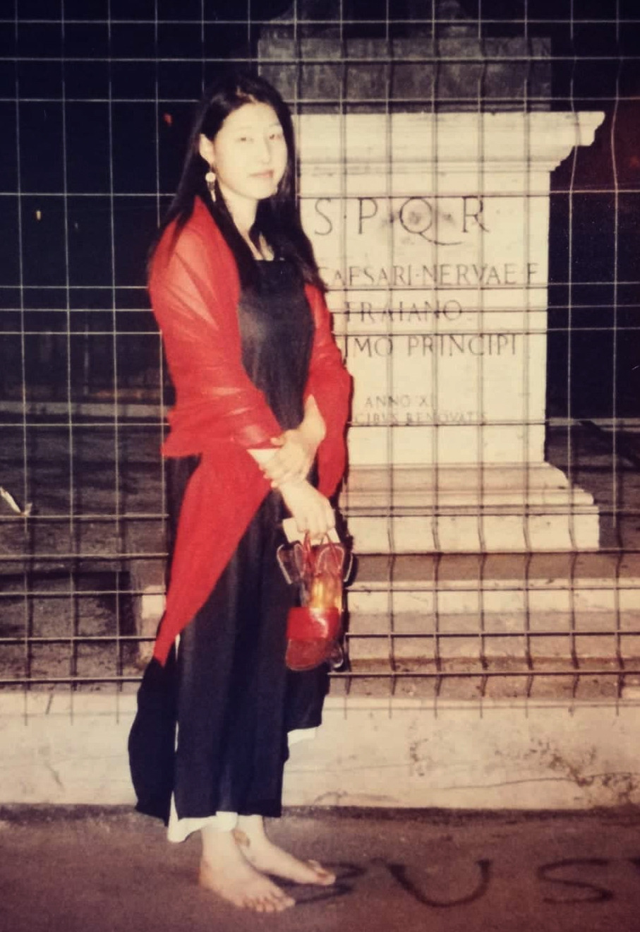로마에서 맨발로 돌아다니던 날 밤(왼쪽), 대학로에서 친구들에게 받은 힐 기념샷(중간), 도쿄에서 여행패션(오른쪽)