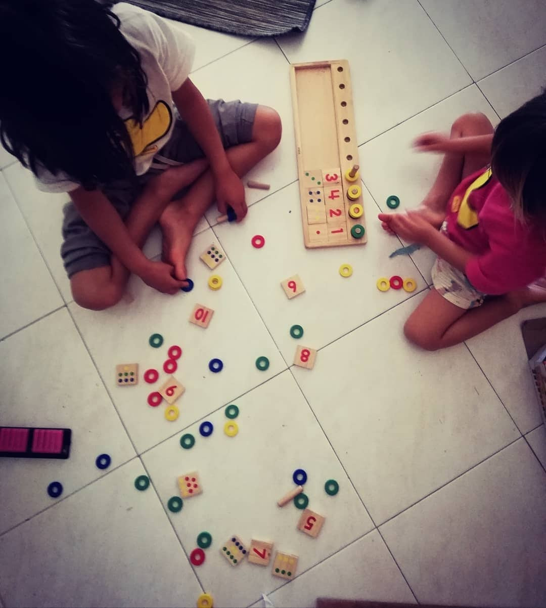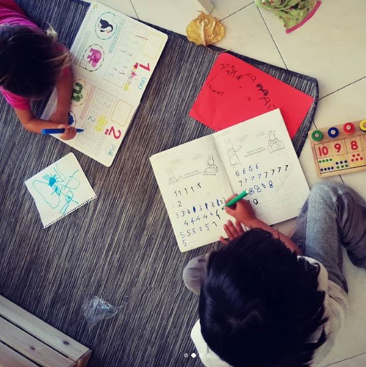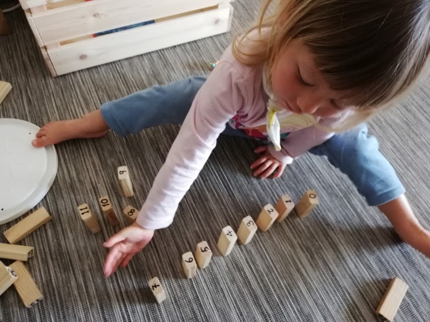 예를 들어, 첫째인 율이는 숫자에 관심이 없어도 너무 없으셨다. 만 3살이 될 때까지 10까지 막힘없이 세는 날이 드물었다. 하긴 한국의 2가지 숫자를 세는 방식과 이탈리아식 숫자까지 합쳐서 3가지를 모두 알아야 했으니... 숫자에 관심도 없는 아이가 이 모든 걸 알아내기엔 뭔가 너무 많았다. 만 5살이 조금 안되었을 때에도 항상 숫자 10을 헷갈려하는 이 첫째 오빠에게 아무도 안 가르쳐 주었는데 그냥 숫자 10까지를 주르룩 읊던 만 21개월 된 여동생이 있었으니. 당당히 여동생이게 9 다음 막히면 부끄럼 없이 그 다음이 뭐냐 묻던 내 아들! 만 6세가 되던 어느 날 아침, 혼자서 숫자 관련된 도구들을 바닥에 주르르 널려 놓더니, 숫자판 놀이를 하고, 숫자 메카니즘을 이해한듯 숫자 30까지 막힘없이 주르르 읊어나갔다. 이에 리듬 맞추어 은근히 건네준 숫자놀이 책을 하루 종일 섬렵했다. 이렇게 아이들은 자기의 시간과 속도로 성장한다.