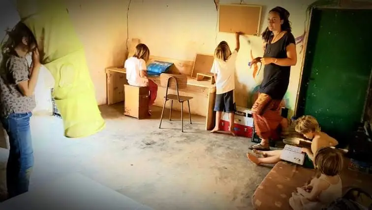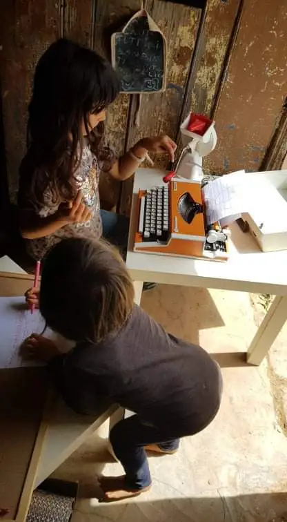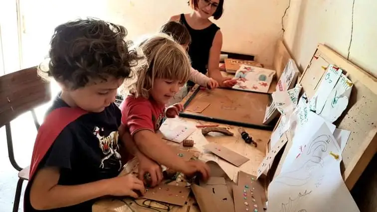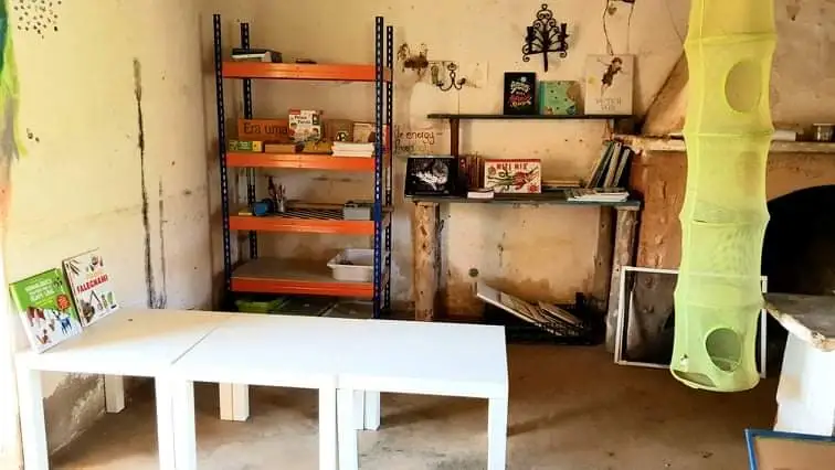 모든 물청소가 끝나고 이튿날, 남편 지오르지오 Giorgio가 마지막으로 바닷가의 집을 모두 정리하고 마지막 짐들을 트랜스 포머 그린 벤에 가득 싣고서 돌아왔다. 그럼으로써, 아이들을 위한 공동 공간에 들어갈 여러 책상들과 책장, 재료들을 조금씩 넣기 시작했다. 아이들의 키에 맞춘 책상들과 아이들의 눈높이에 맞추어서 책들을 주제나 연령에 맞추어 바구니에 담아 여기저기에 배치하였다. 그림 그리기나 만들기 같은 수 작업을 하기 위한 재료들을 아이들이 가장 손에 닿기 쉬운 높이에 배치하고, 숫자 놀이와 글자를 익히기 위한 자료들을 다음 위 선반에 배치하였다. 또한, 조금 연령대가 높은 아이들이 즐길 수 있는 테이블 게임들을 가장 위에 놓아 원할 때면 언제든 의자를 놓고 올라가서 쉽게 꺼낼 수 있도록 배치해 두었다. 또한, 조금 더 낮은 연령의 아이들을 위한 숫자 놀이와 생각하는 놀이 자료들은 따로 높이가 낮은 미니 테이블에 배치하여, 아이들이 손쉽게 꺼내서 사용할 수 있게 유도하였다.