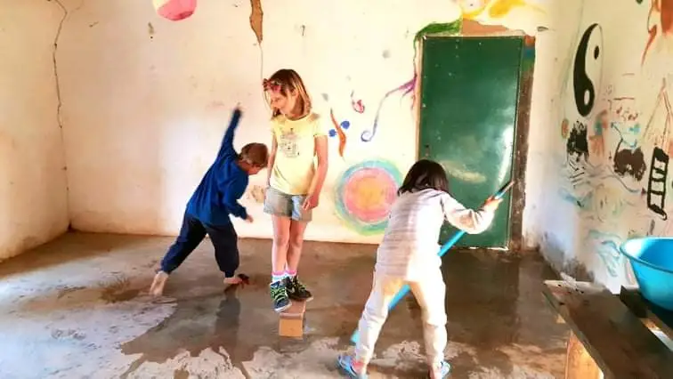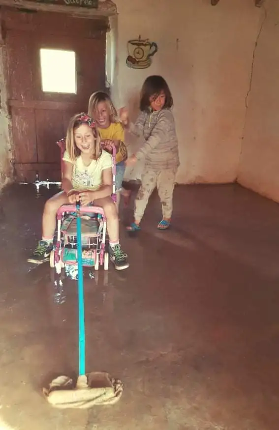아직 집시의 집이 정돈 되기도 전에, 나는 아이들을 위한 공동 공간에 눈을 돌리기 시작했다. 이 공간은 온전히 아이들을 위한 공간이었지만, 아직도 예전에 누군가가 남겨둔 물건들이 반 이상 공간을 차지하고 있었다. 어차피 아이들은 이를 개의치 않고 가지고 있는 공간을 100% 활용해서 이것저것 실험도 해보고 놀이들을 만들기도 하고, 책들을 보기도 한다. 그래도 조금 더 실용적이고 적절하게 공간을 활용할 수 있도록 이 공간을 바꾸기로 했고, 대대적인 청소 작업이 시작되었다. 처음 이 공간은 지붕도 군데군데 뚫려서 비가 오면, 물이 새어 들어오고, 지붕이 언제 어떻게 무너질지도 모를 페허 같은 공간이었다. 아이들이 들락날락하는 것이 염려되어 Tomas와 Grant가 지붕 보수 작업에 들어갔고, 이제는 비가 와도 끄떡이 없는 공간으로 변신했다. 또한, Daniela와 함께 필요한 물건들과 필요 없는 물건들을 먼저 분류하고 모든 먼지들을 제거하기 위해 대대적인 물청소를 감행하였다. 우리들의 대대적인 대청소에 아이들은 뜨거운 반응을 보이며 도왔고, 마지막 물 바닥 청소는 아이들의 몫이 되었다. 아이들은 신나 하며 자신 나름의 방식대로 바닥 청소를 가동하였다. 누군가는 물걸레를 가지고 춤을 추기도 하고, 누군가는 장난감 유모차에 올라가 물청소 기계 역할을 하기도 하고, 누군가는 신나게 물청소 기계를 몰기도 하였다.