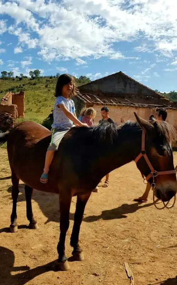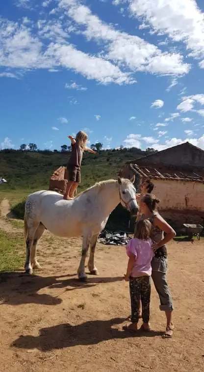 방문 한 켠에 어른들이 아이들을 위해서 할 수 있는 오후 활동들을 제안하는 달력을 붙여 놓았다. 이곳에는 체스 게임, 테이블 게임, 재봉틀로 바느질 하기, 피자마 파티, 김밥 만들기, 요가 등등 아이들이 흥미로워하는 활동들로 조금씩 채워져 갔다. 첫 번째 타자로, 여러 동물들을 키우고 있고, 3마리 말을 가지고 있는 Nadia가 말과 소통하고 탈 수 있는 활동을 제안했다. 그리하여 아침 10시 모든 아이들과 대부분의 어른들이 Nadia와 Felipe의 도움을 받아, 말과 어떻게 소통할 수 있으며, 말 위에 올라가서 어떤 자세로 있어야 하는지를 상세히 알려주며 아이들 하나하나가 원하는 말에 타볼 수 있는 기회를 가졌다. 첫째 아들 율이는 겁이 많아 시도하지 않을 것만 같았건만, 아침을 후다닥 먹더니, 말 보러 가야 한다며 가이아를 재촉해서 먼저 가 버렸다. 원체 놀 때는 조심성도 없고, 덤벙대고, 주의력 없기 유명한 율이 인데, 말 위에 올라간 율이는 사뭇 달라 보였다. 무척이나 침착한 표정으로 허리를 꼿꼿이 세우고 말 갈퀴를 잡고 말과 함께 움직였다. 갑자기 아들이 훌쩍 커버린 것만 같아 보였다.