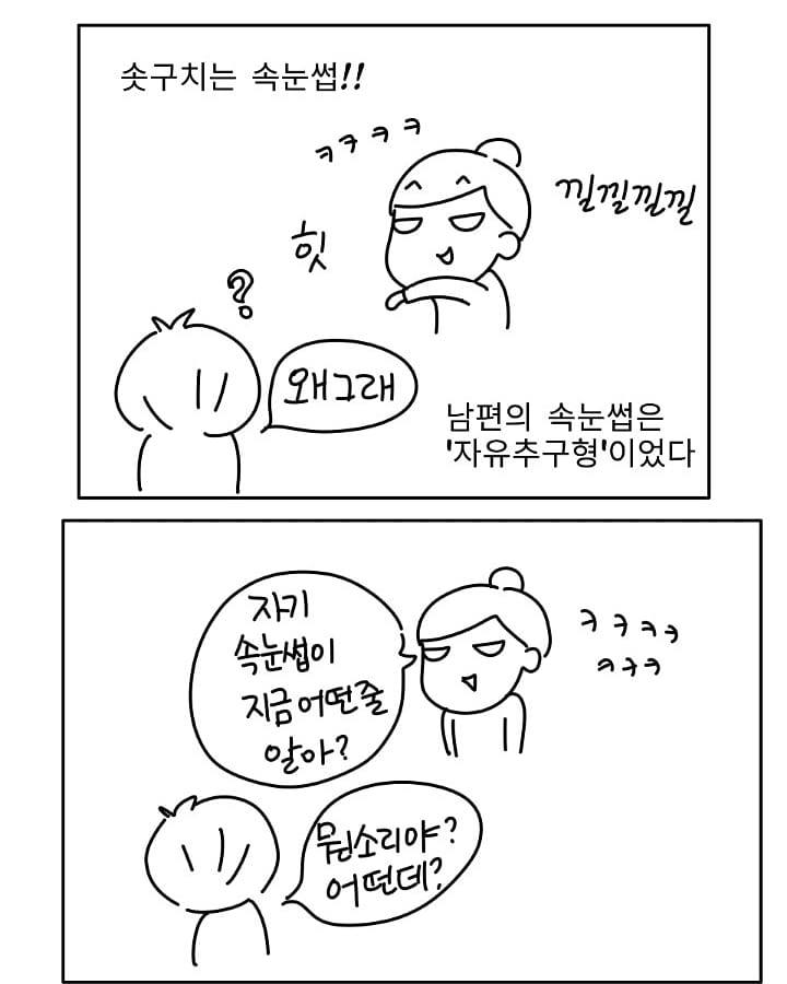 유난히 솟구치는데 아내는 웃긴가 보다.