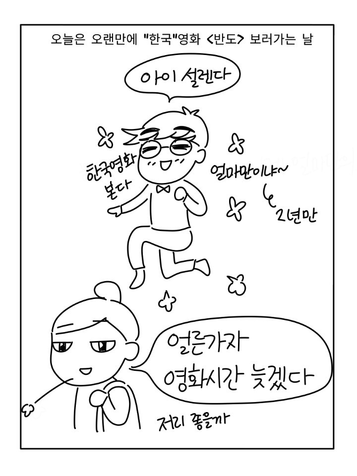 영화 보는 게 취미다. 코로나 덕에 극장 근처에도 못갔다가 오랜 만에 가서, 정말 오랜 만에 한국 영화, 그것도 애정하는 좀비 영화를 보고 오니 좋구나. 반도 재미있음. 많이 봐서 3탄 나오길 희망.